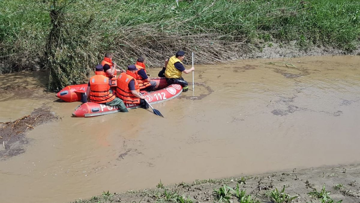 Și în aceste momente pompierii o caută pe râul Sitna. La misiune participă 17 pompieri cu o barcă si accesorii specifice