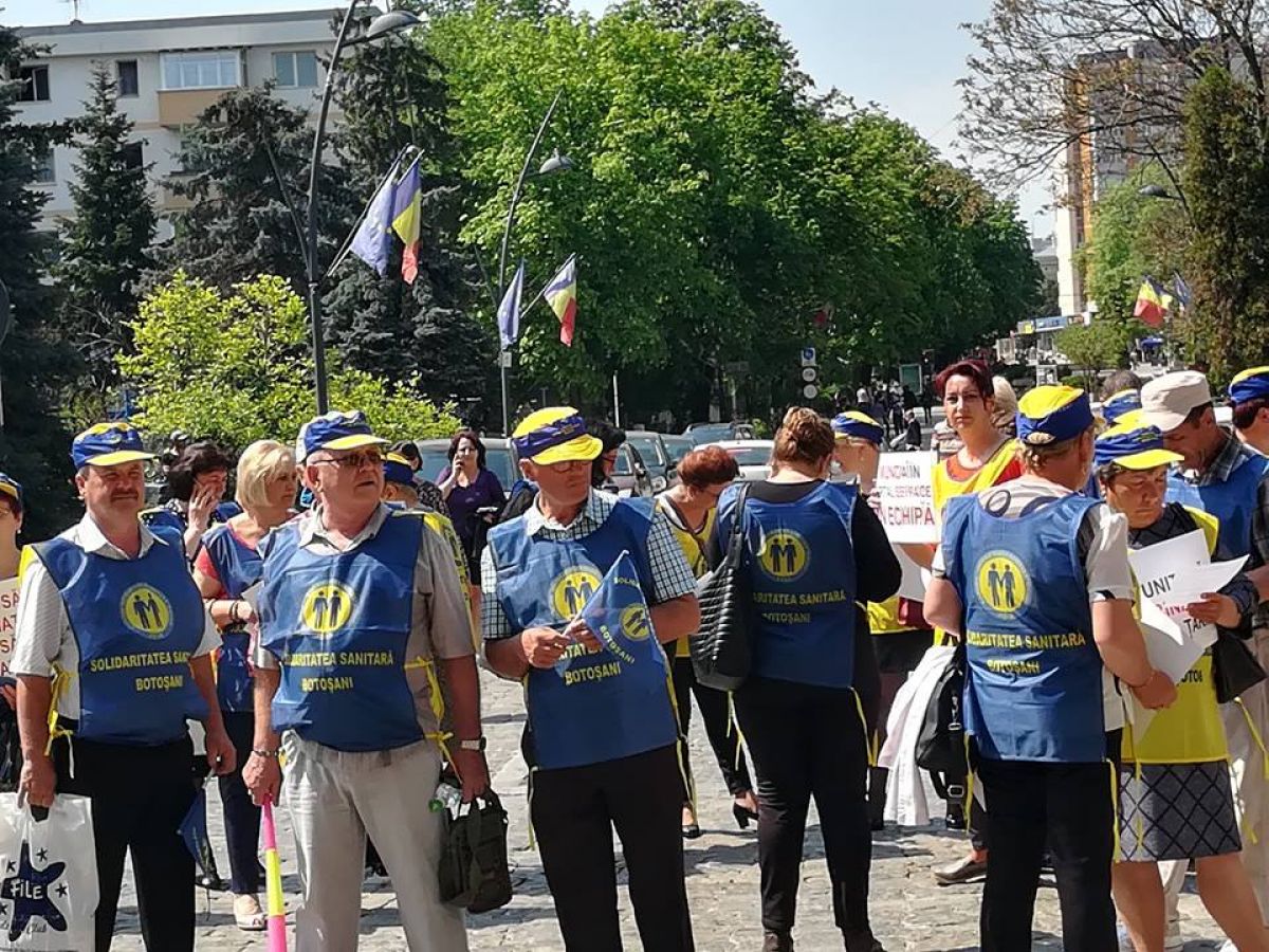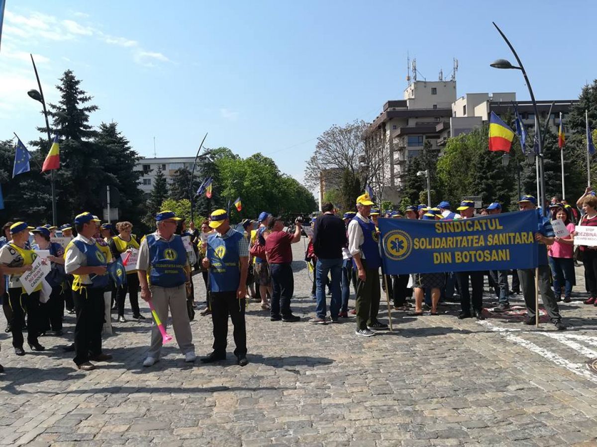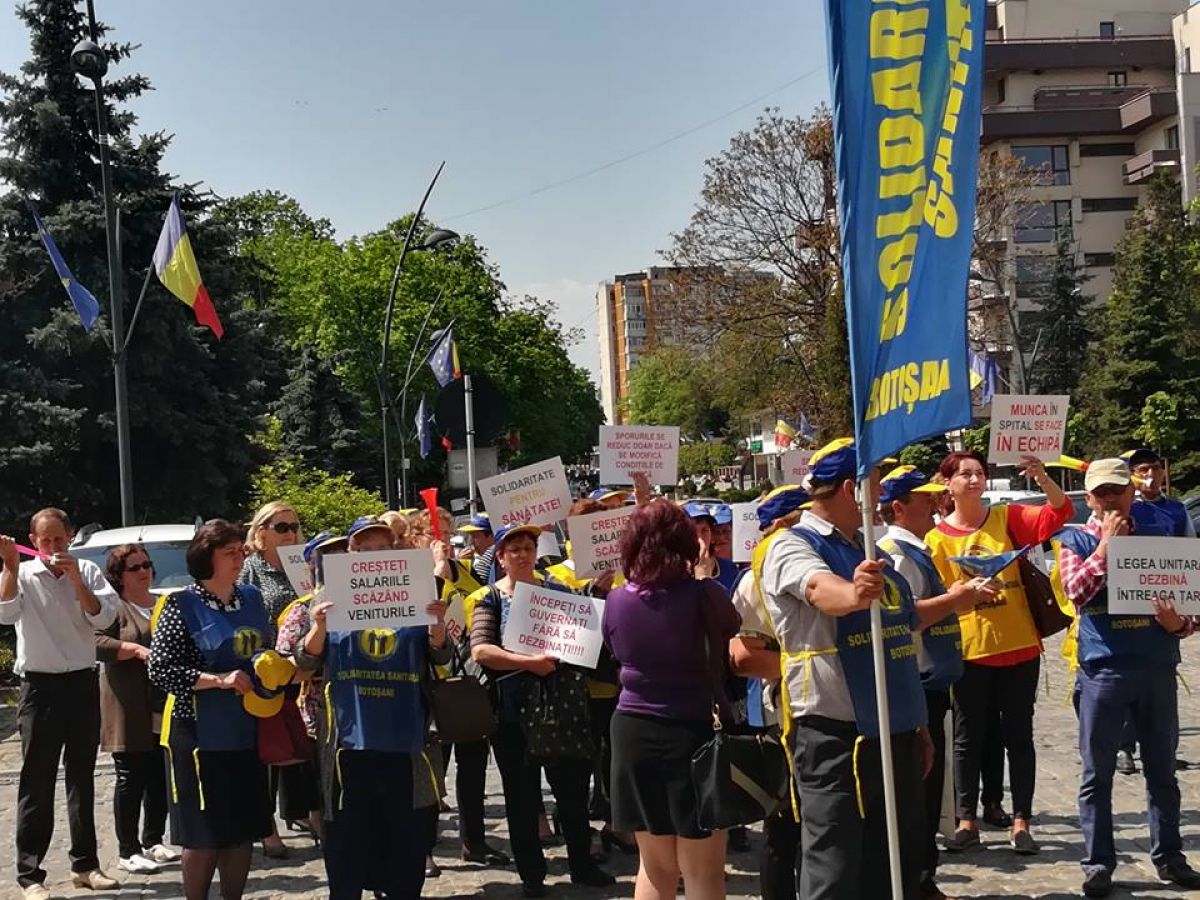 Personalul medical este nemulţumit că de la 1 martie 2018, le-au scăzut salariile şi asta pentru că Legea 153 nu este unitară. Aceștia aveau în mână pancarte, stegulețe și vuvuzele.