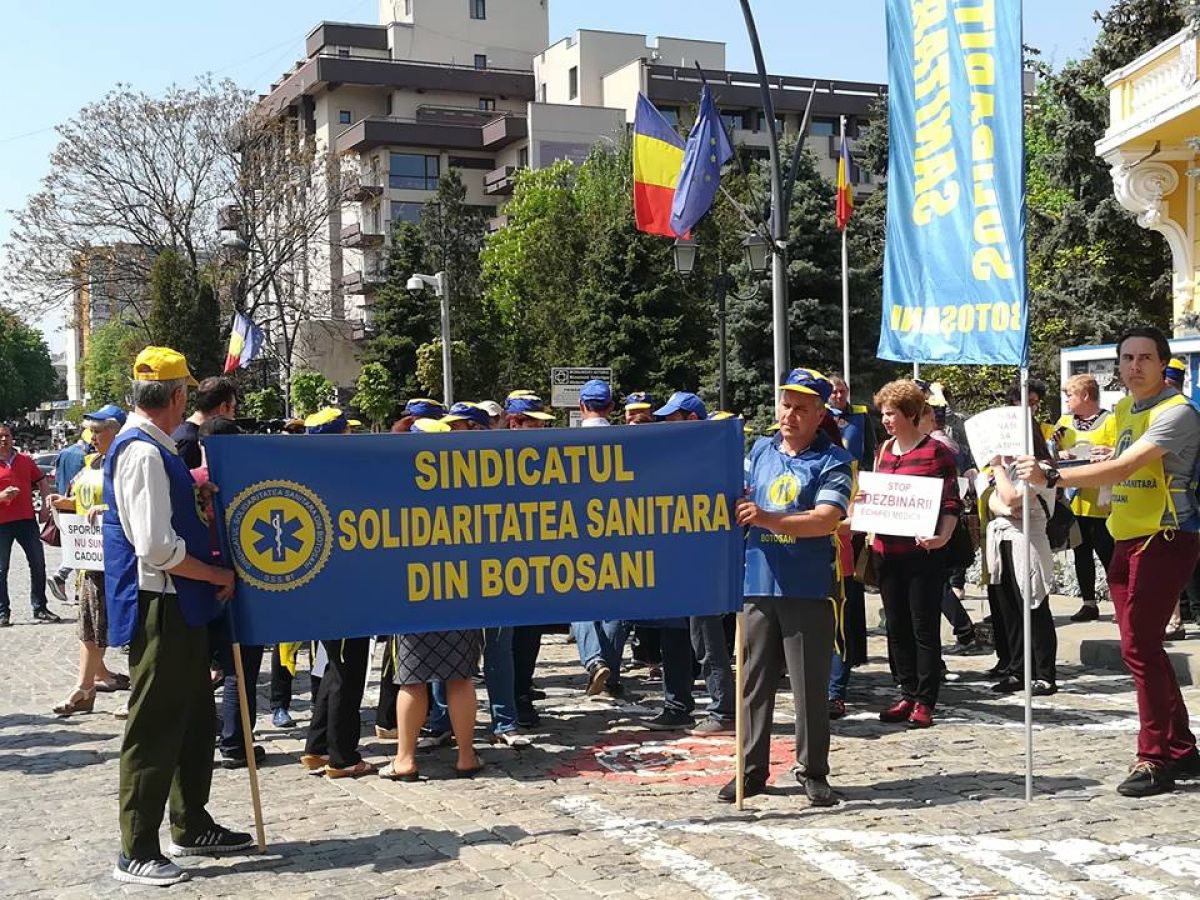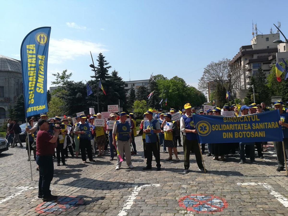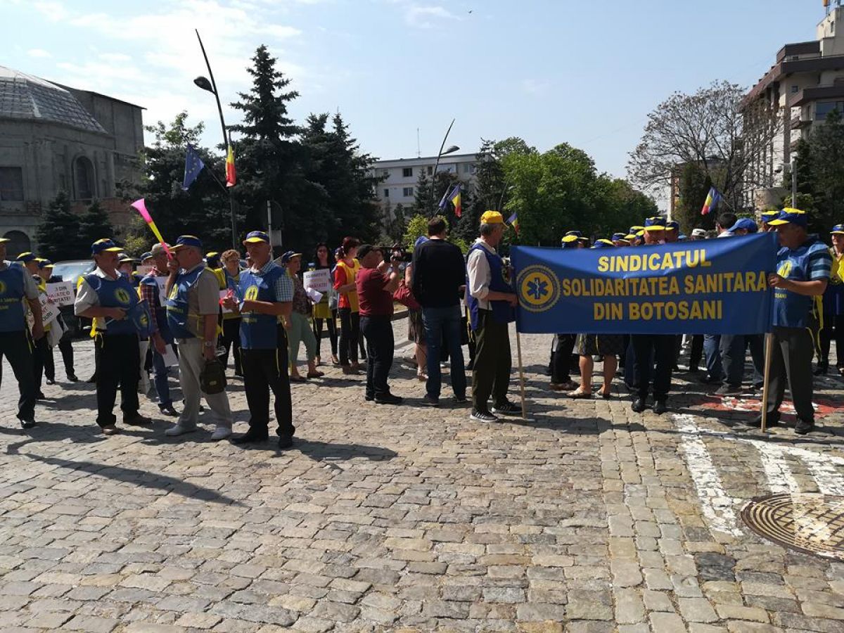 Personalul medical este nemulţumit că de la 1 martie 2018, le-au scăzut salariile şi asta pentru că Legea 153 nu este unitară. Aceștia aveau în mână pancarte, stegulețe și vuvuzele.