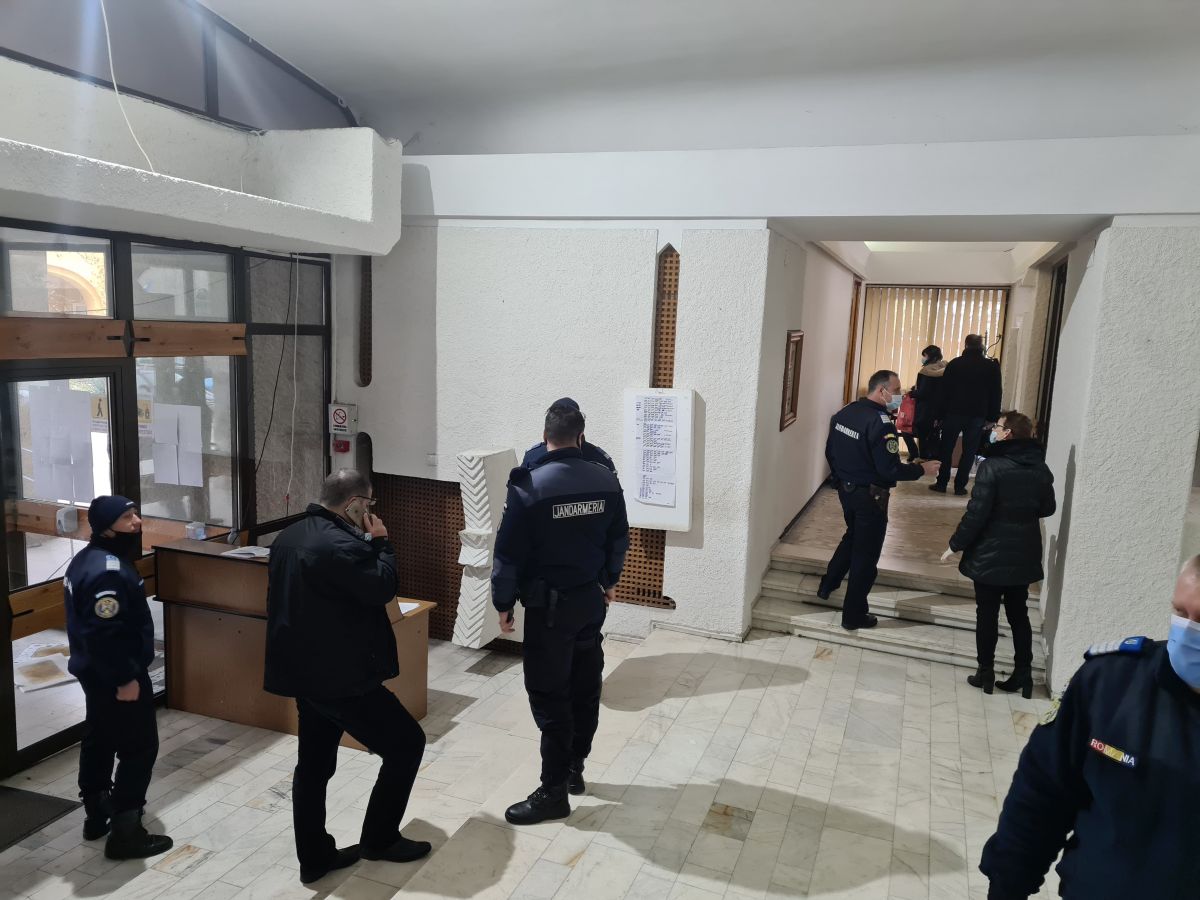 Mai multe echipaje de jandarmi se asigură că această ultimă etapă din procesul electoral este dusă la îndeplinire în condiții de siguranță.