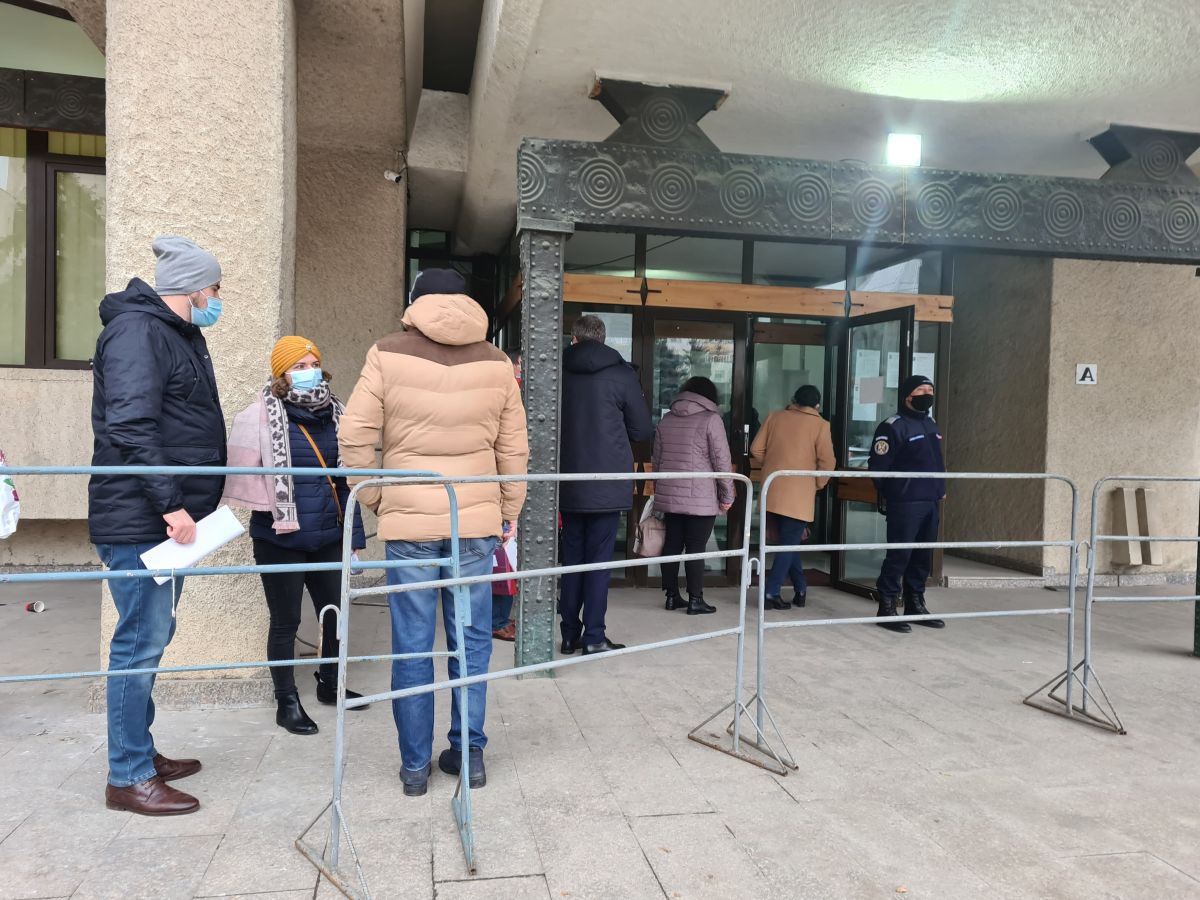 În incinta Palatului Administrativ de la Botoșani, unde funcționează Biroul Electoral Județean, activitatea este încă în plină desfășurare. Afară, pe trepte, câteva persoane stau la coadă, pentru a preda procesele-verbale din secții, dar și ștampilele.