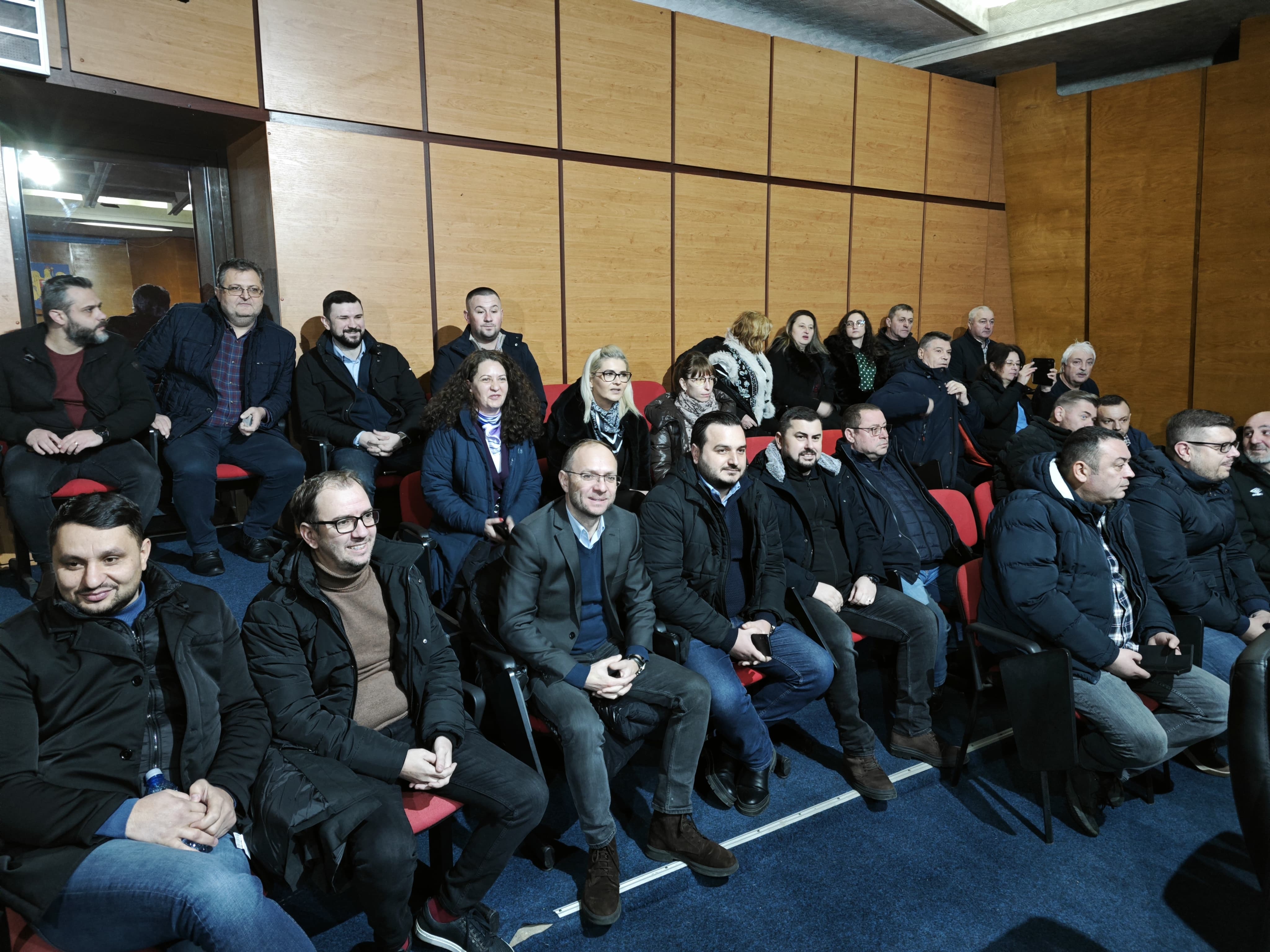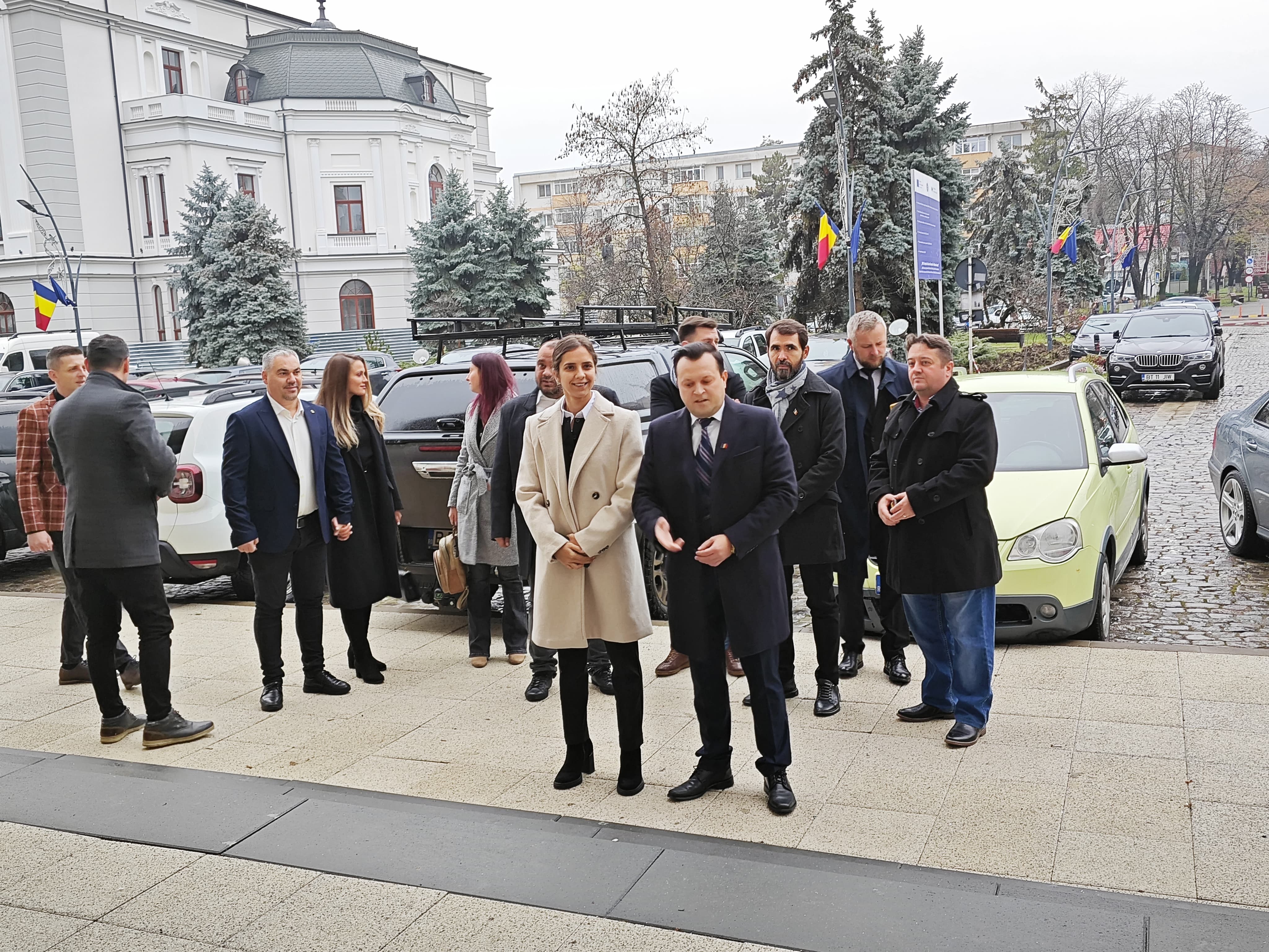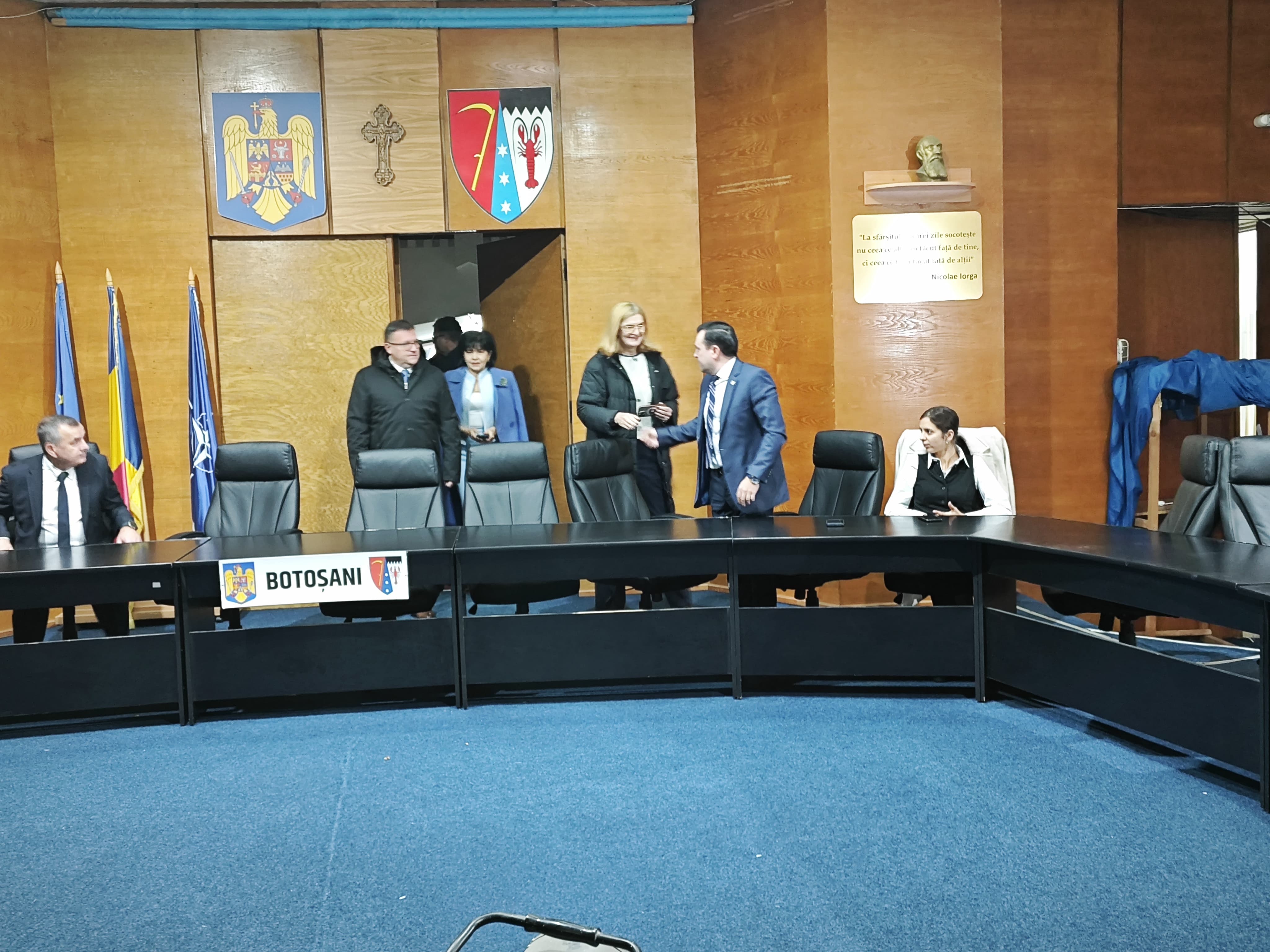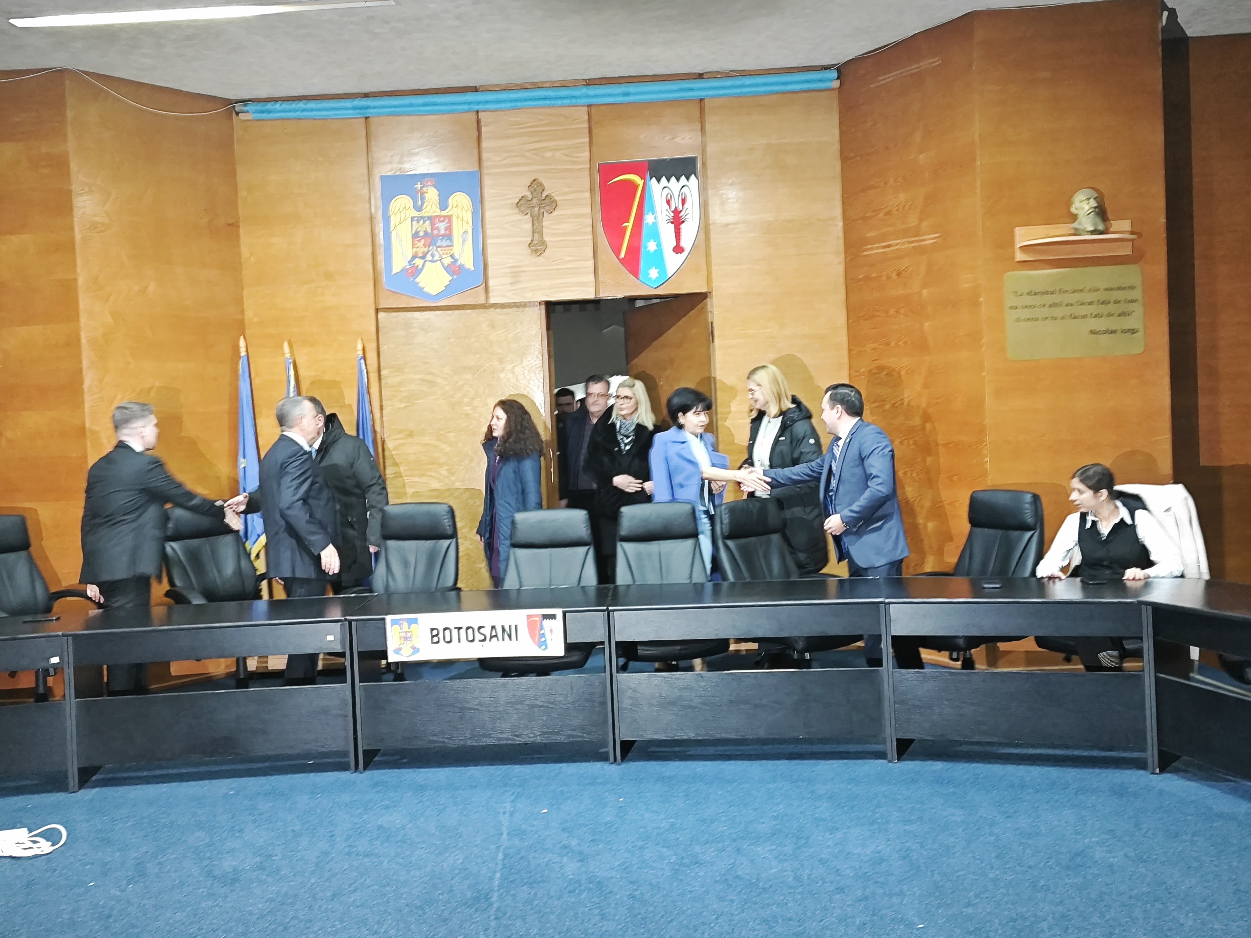 La ceremonie sunt prezenți membri ai echipelor de la PSD, PNL și AUR, inclusiv primarul municipiului Botoșani, Cosmin Andrei.