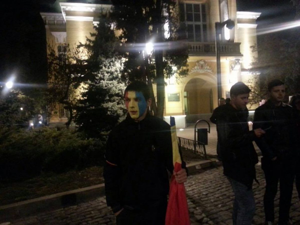 Doar 75 de oameni se află în aceste momente în Piața Revoluției, printre care și un grup de minoritari care par să vor și ei schimbare. Protestatarii poartă cu ei steaguri, iar unul este chiar pictat pe față în culorile naționale.