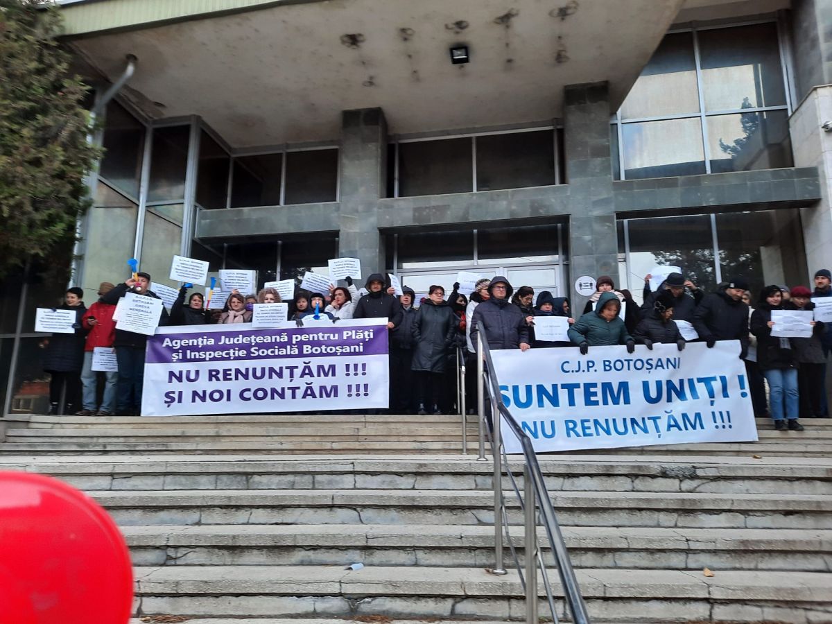 Au ieșit pe treptele instituției din nou, angajații din cadrul Casei Județene de Pensii, precum și cei ai Agenției Județene de Prestații și Inspecție Socială.