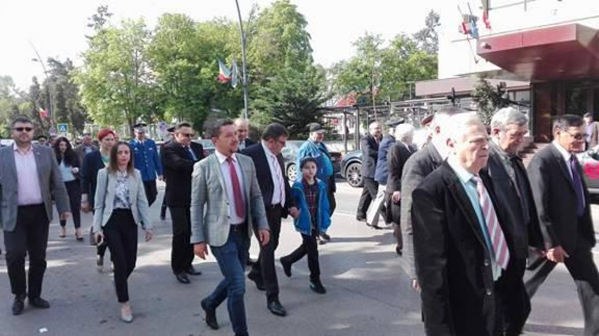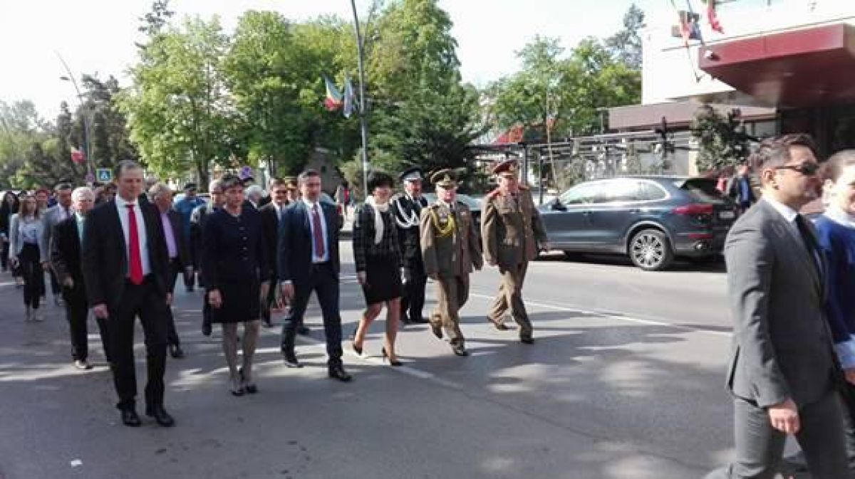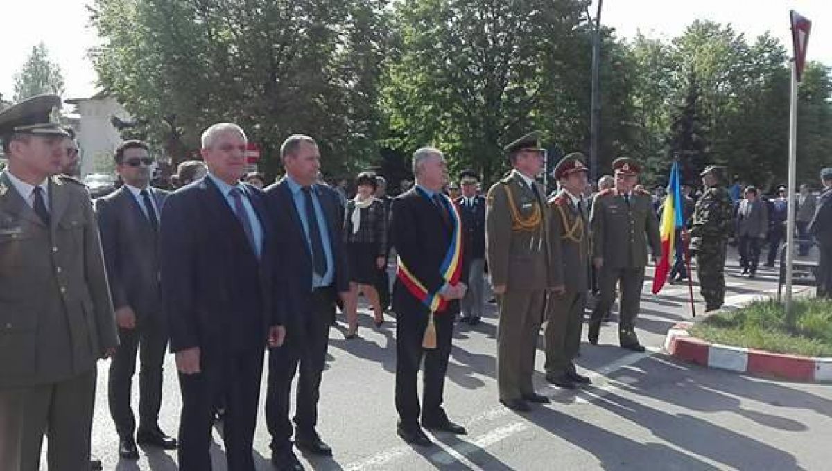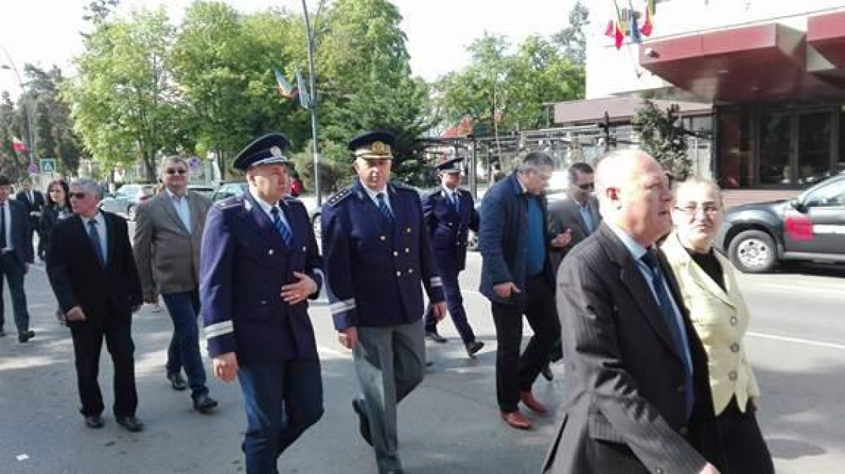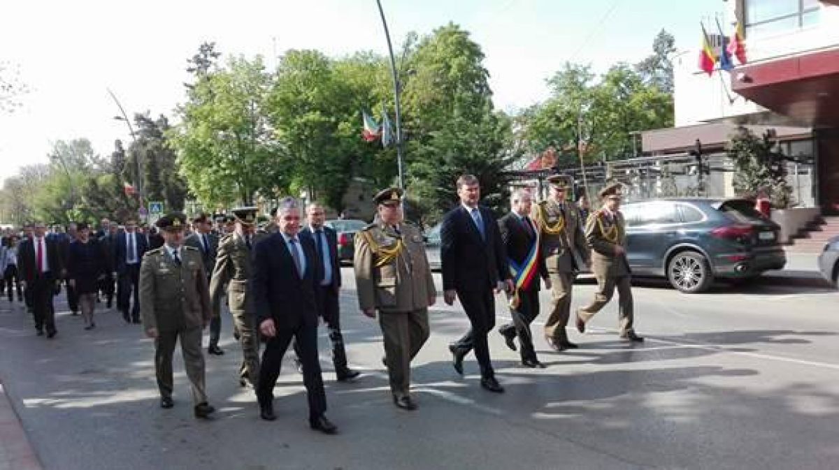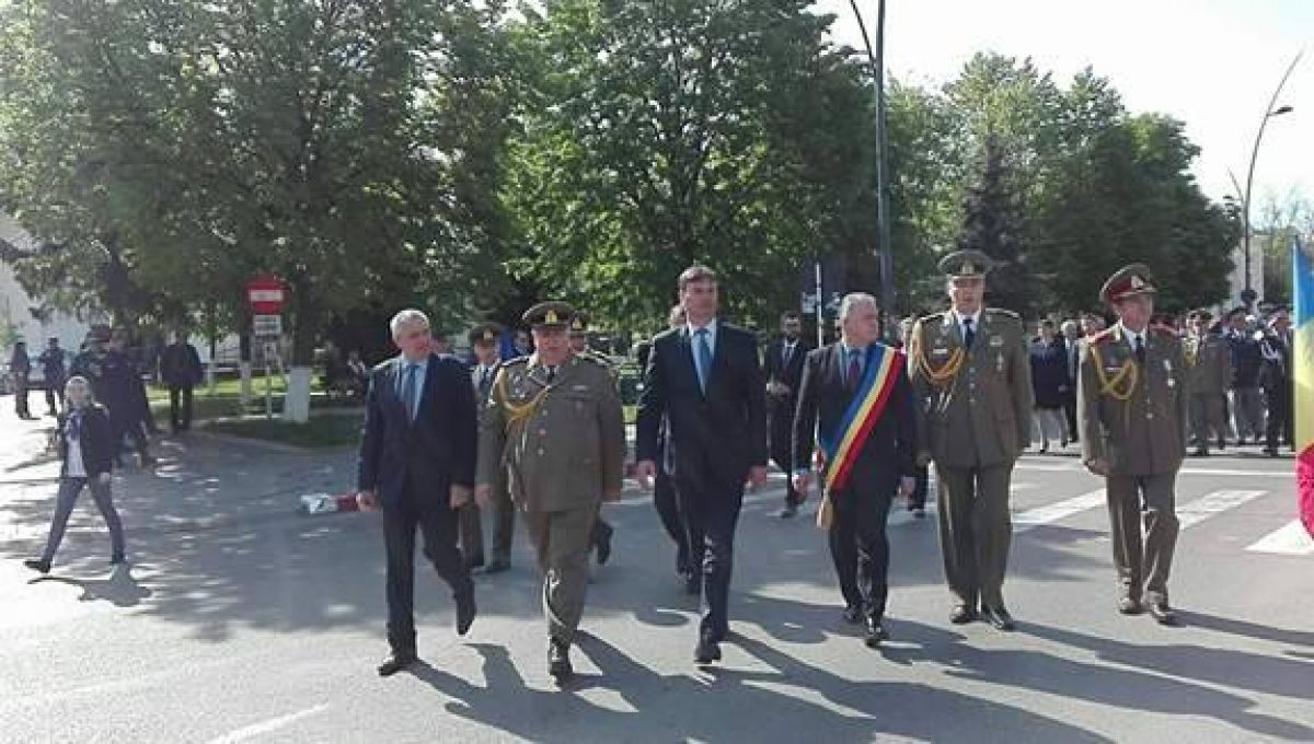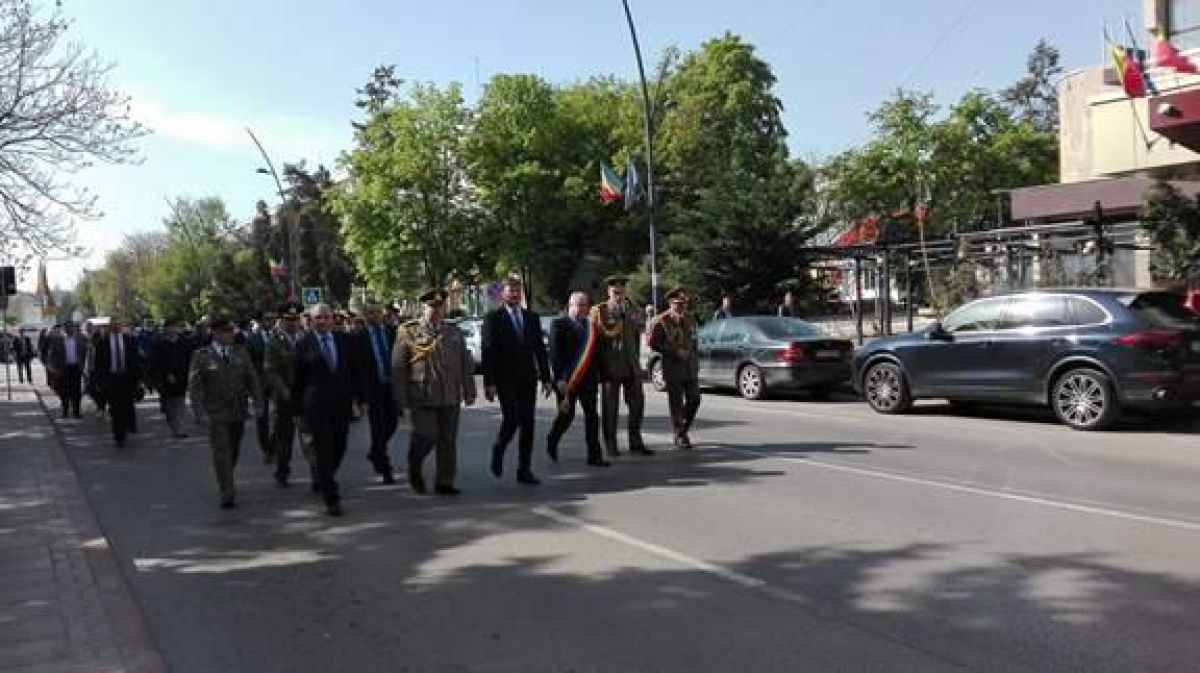 Șefii județului și ai orașului se află în aceste momente în centrul orașului, lângă Monumentul închinat Eroilor căzuți în cel de-al Doilea Război Mondial, alături de militarii de la Garnizoana Militară.