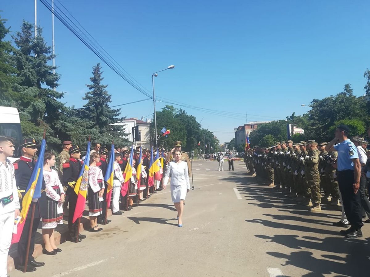 Suprefectul Daniela Lozneanu a dat onor Gărzii Militare, prefectul Dan Șlincu fiind în concediu. În cele ce urmează se vor prezenta cele 11 drapele românești, începând cu anul 1848 și până în prezent.