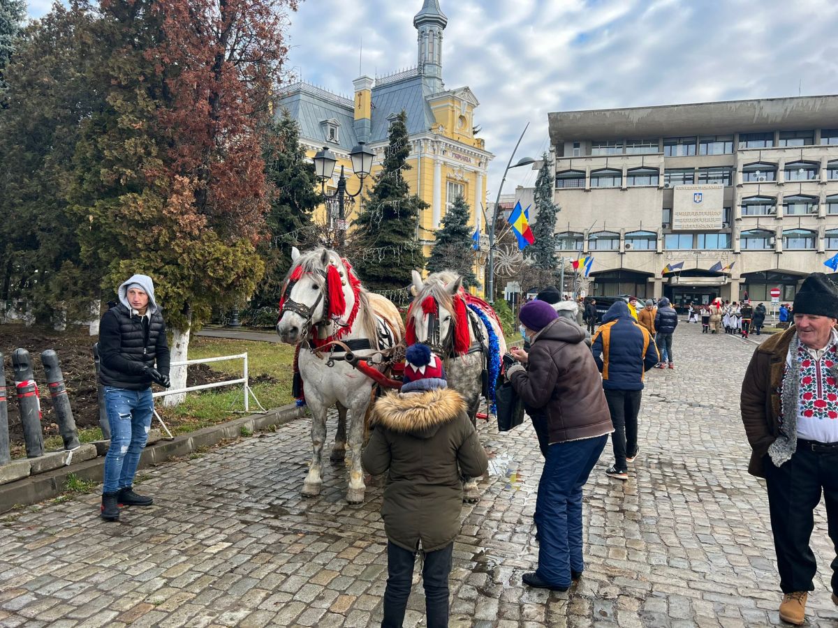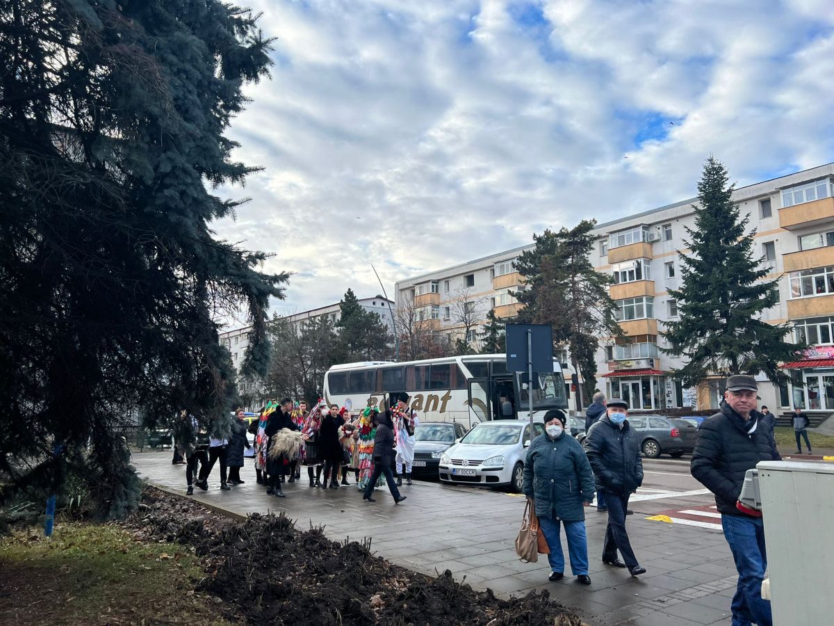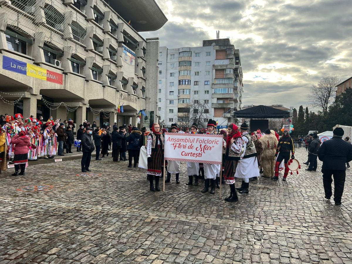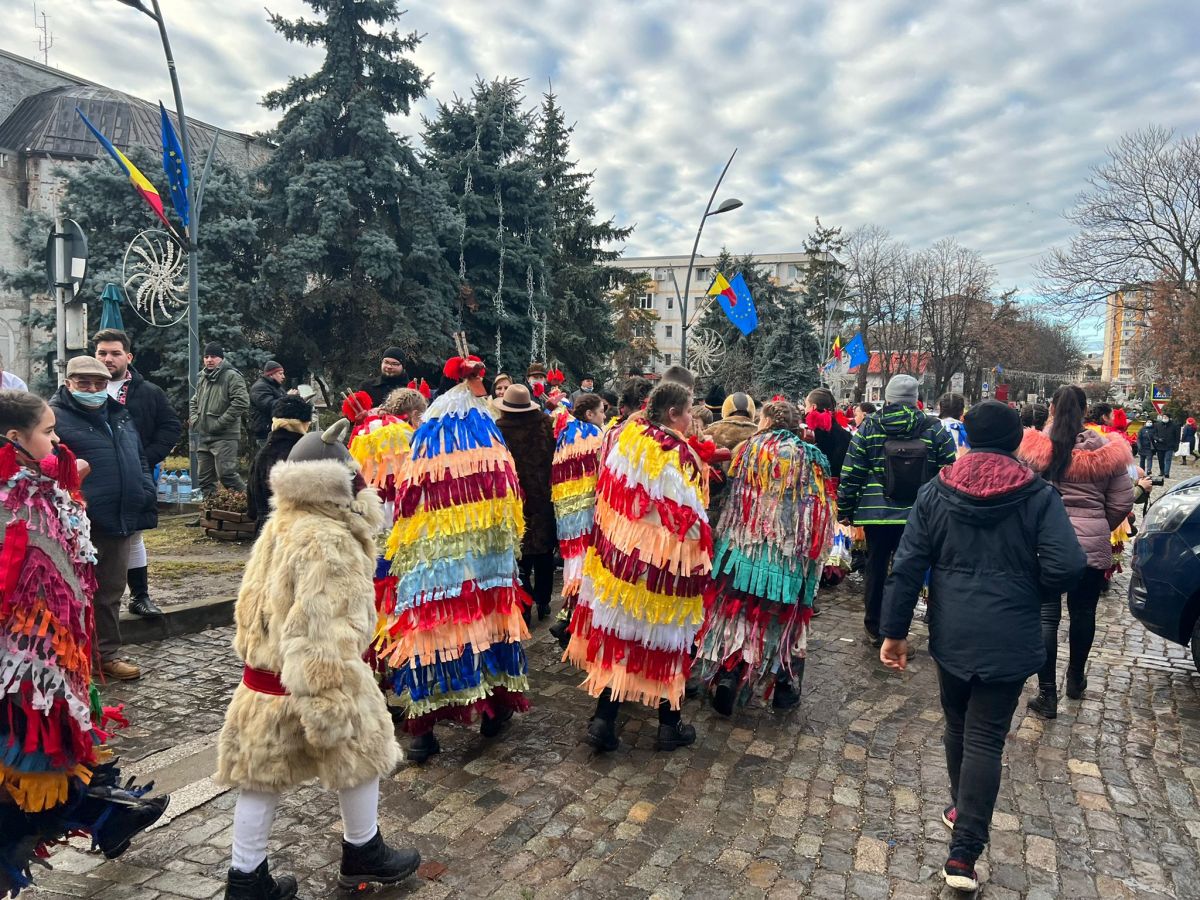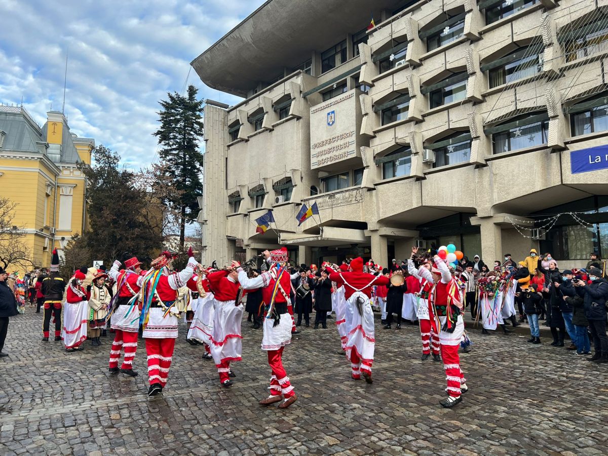 Piața Revoluției răsună în aceste momente de sunete de tobă și zurgălăi. Foarte mulți participanți din afara județului nu au putut participa din cauză că nu aveau certificate verde.