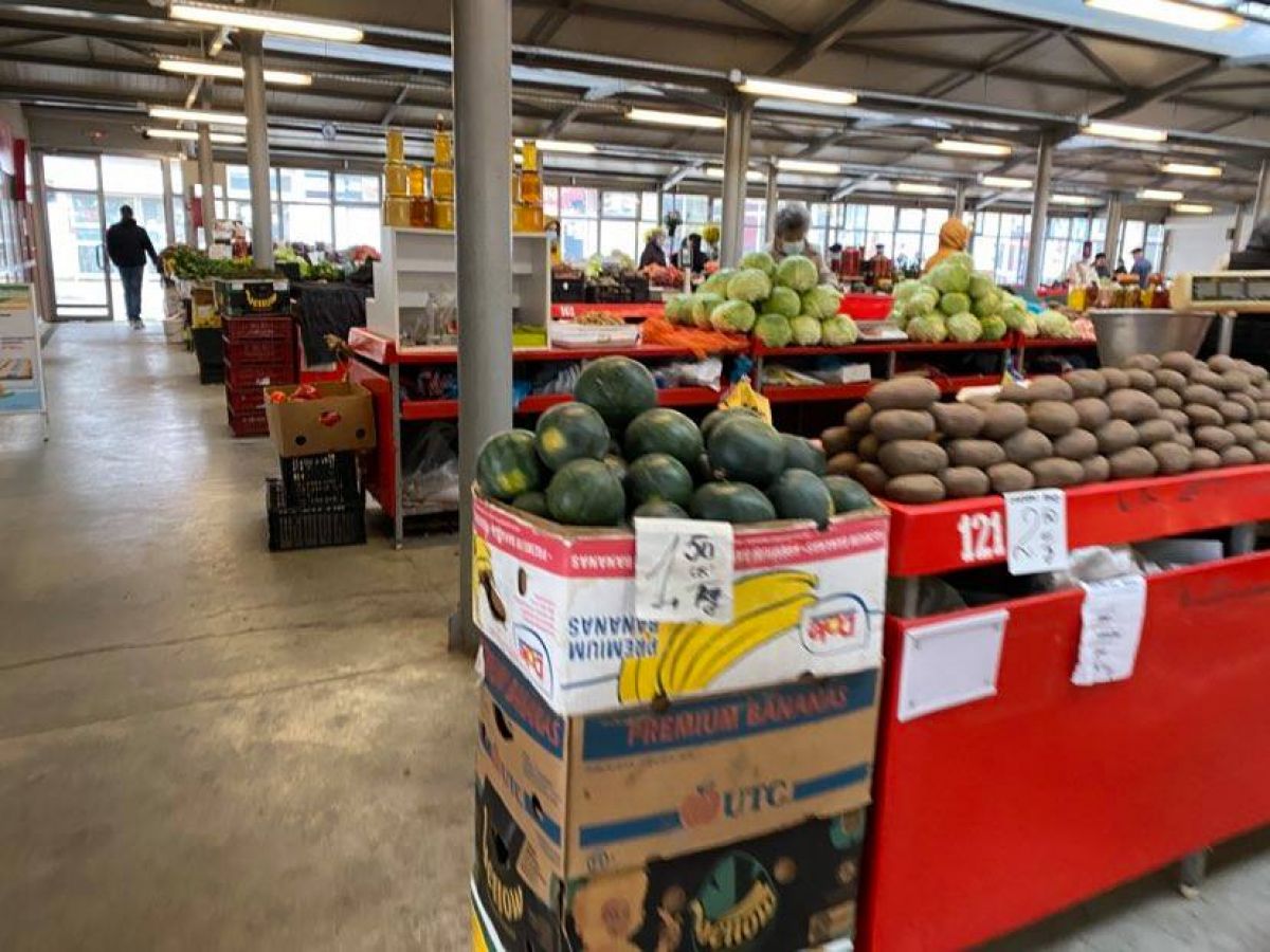 În interiorul pieței, circa 90 la sută dintre tarabe sunt ocupate, deschise fiind și chioșcurile din jur.