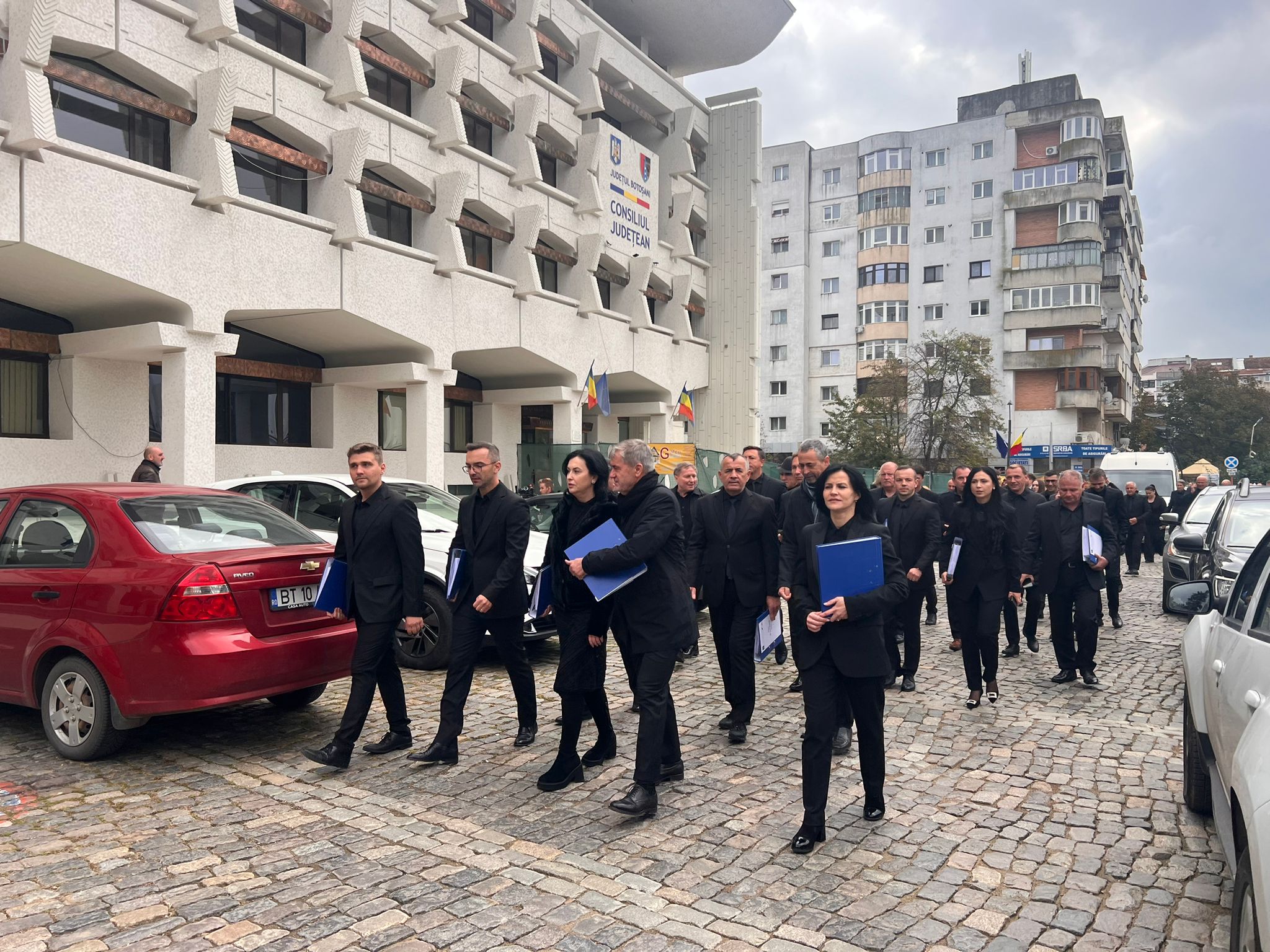 La depunerea candidaturilor pentru Parlamentul României, cei din PNL, îmbrăcați în negru au venit în număr mare, în frunte cu Valeriu Iftime, viitorul președinte al Consiliului Județean Botoșani.