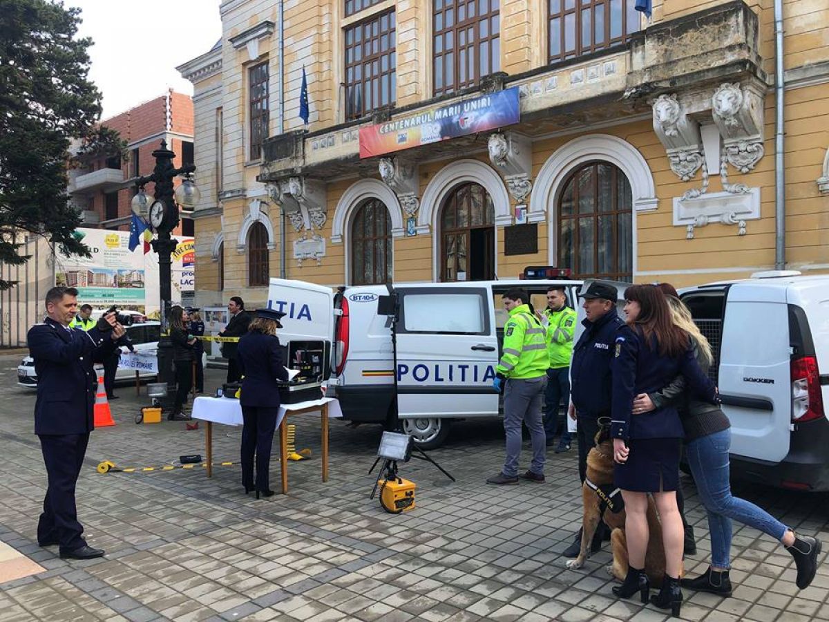 Mai multe echipaje de polițiști criminaliști, rutieri și mascați au venit în dimineața zilei de 25 martie 2019, în fața Muzeului Județean, de pe Pietonalul Unirii, pentru a marca alături de cetățeni, Ziua Poliției Române.