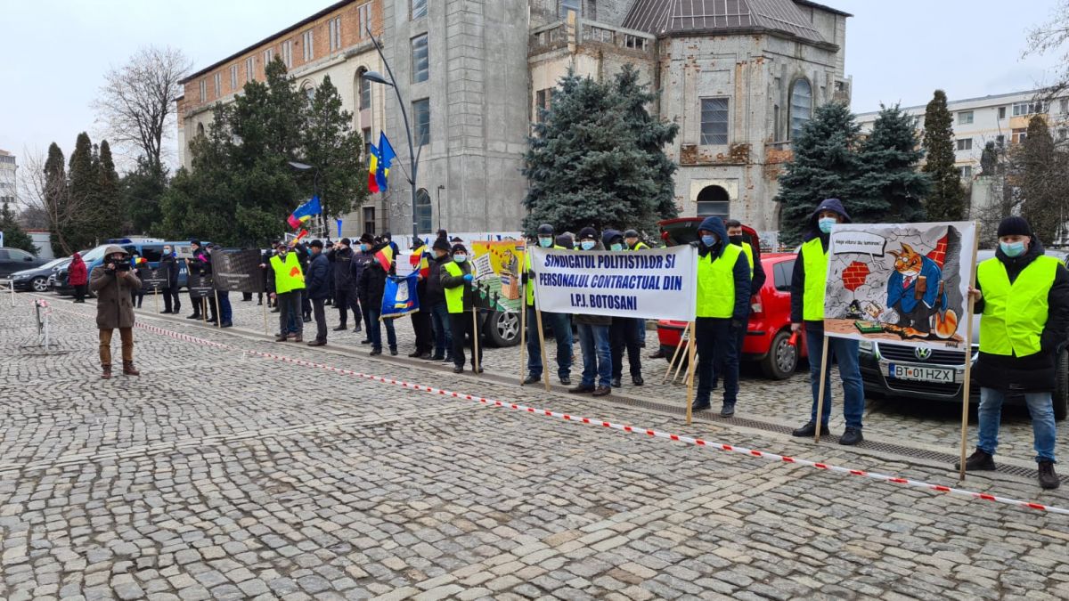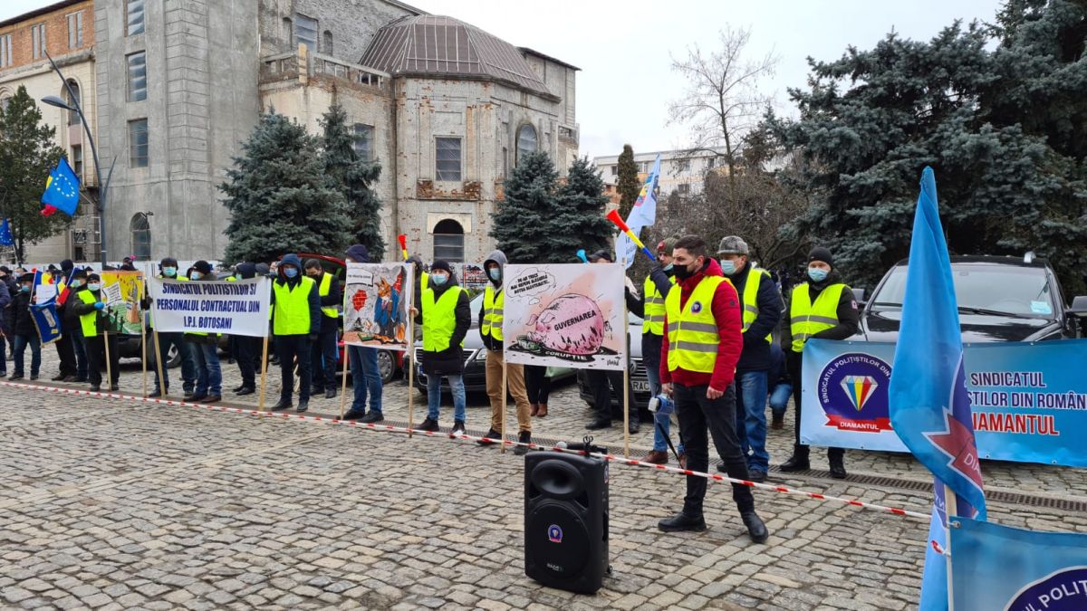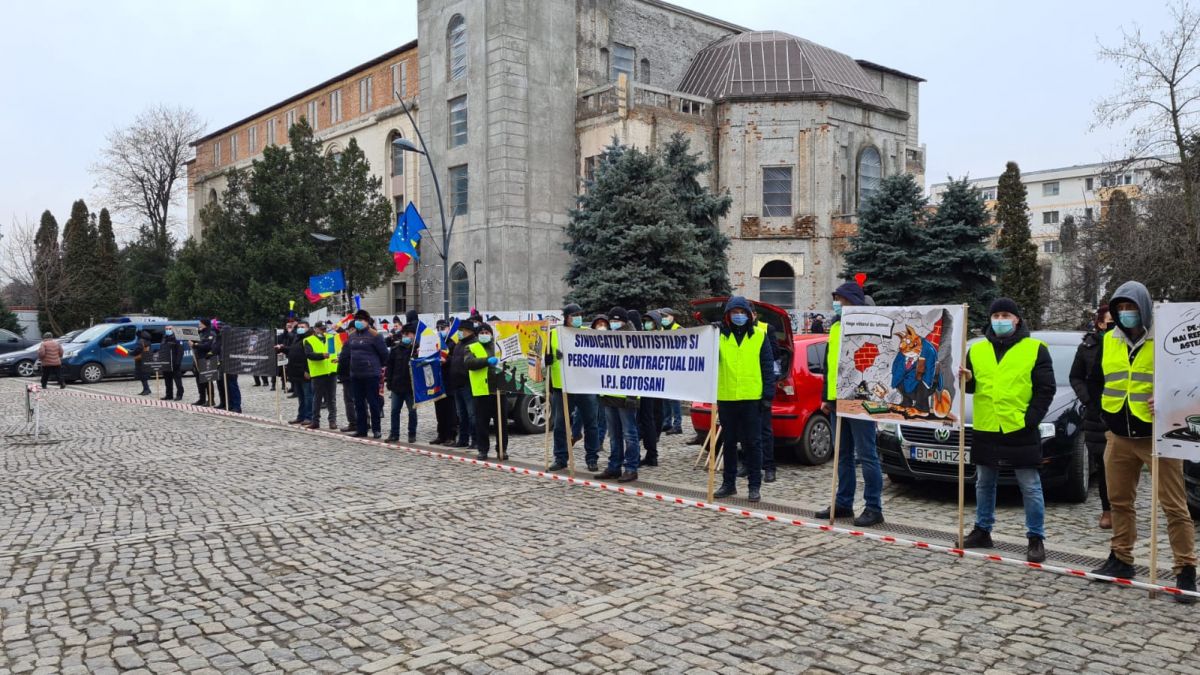 Polițiștii botoșăneni au organizat miercuri un nou protest. Zeci de oameni ai legii sunt în aceste momente în Piața Revoluției.