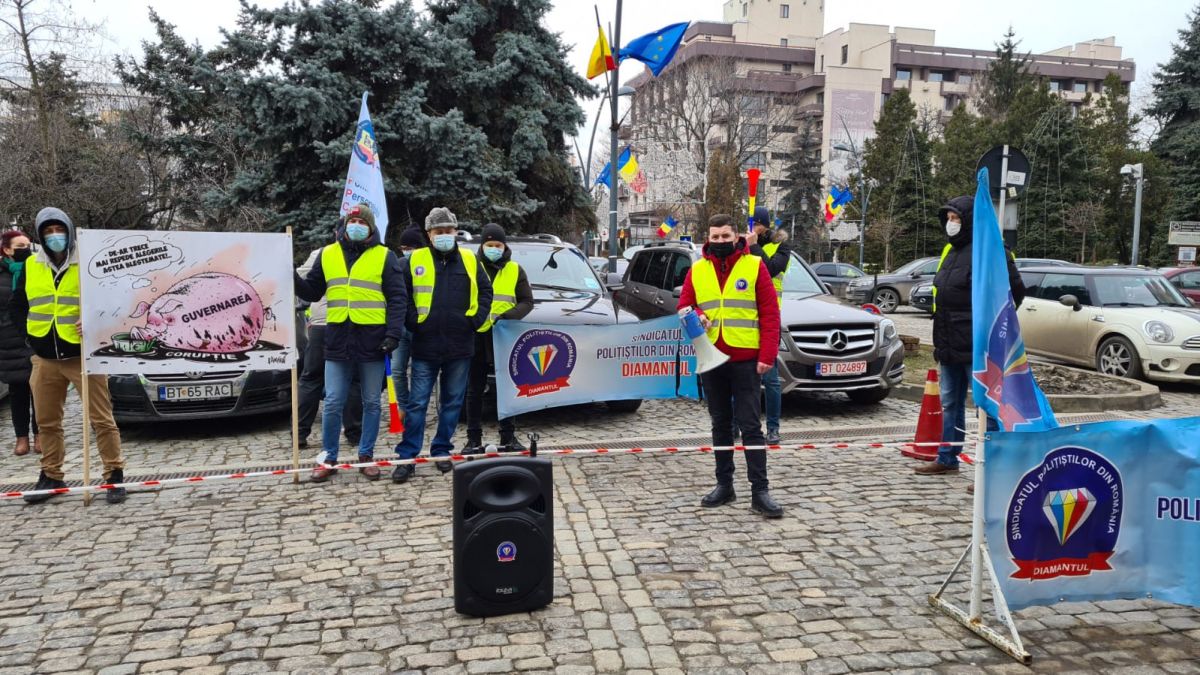 Protestul are la bază ordonanța de Guvern care a înghețat salariile din sistem din acest an, în ciuda unei legi adoptate de Parlament care specifică faptul că remunerațiile lunare ale polițiștilor urmau să crească gradual cu aproximativ câteva sute de lei pe an.