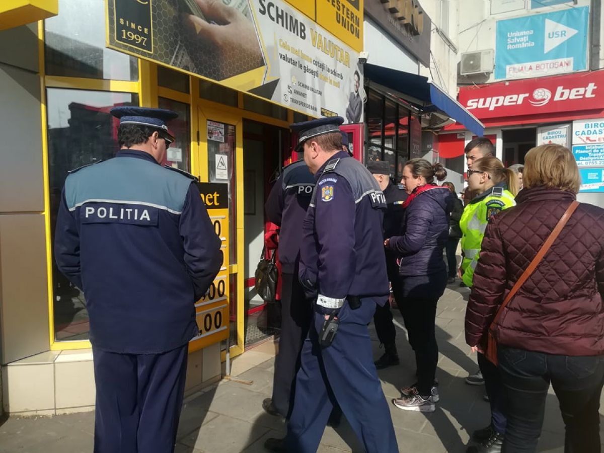 La faţa locului, au ajuns mai mulţi poliţişti dar şi un jandarm. Oamenii legii încearcă acum să identifice autorul infracţiunii. Cel mai probabil, acesta va fi găsit foarte uşor întrucât casa de schimb voluntar în care femeia a fost abordată de individ este dotată cu cameră video.