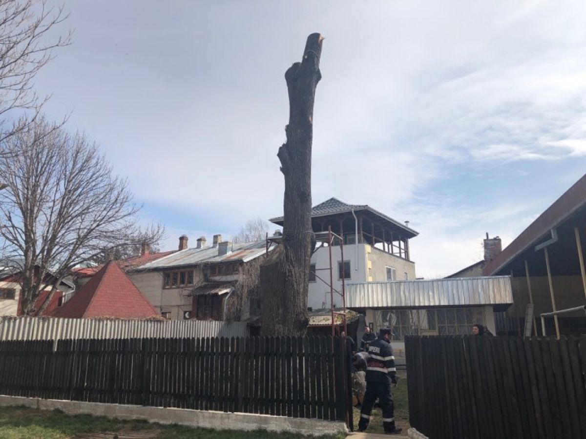 Pompierii botoşăneni au fost solicitați să intervină pentru a tăia un arbore gros din spatele Bisericii Armatei.