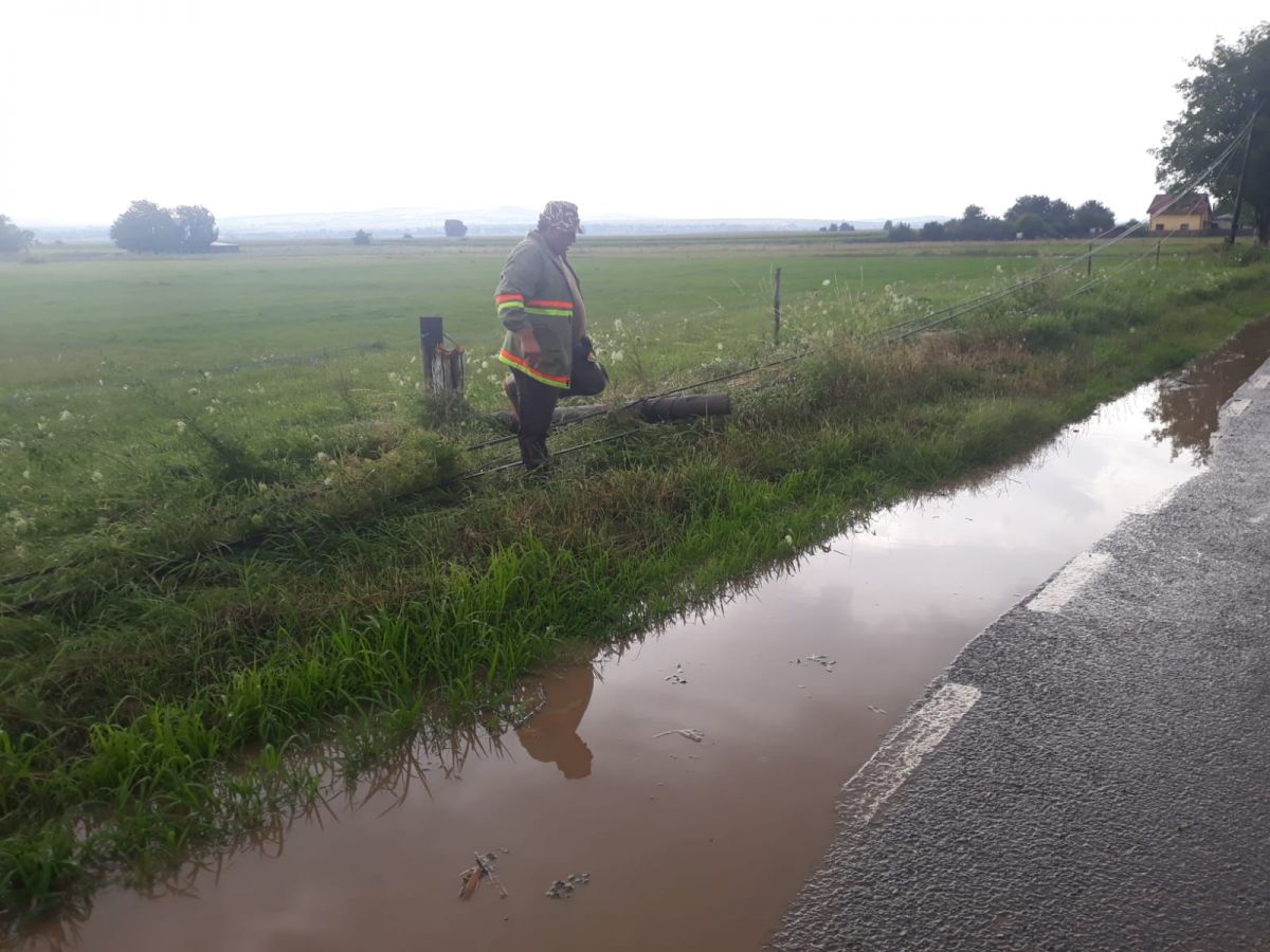 Doi stâlpi căzuți pe partea carosabilă a DN 29C Ionașeni - Vf. Campului. Pentru îndepărtarea acestora intervine Serviciului Voluntar pentru Situații de Urgență Vf. Campului