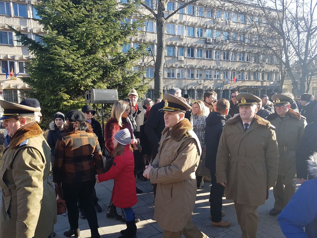 Cu aproximativ jumătate de oră înainte de startul evenimentelor, deja în fața Poliției se află o sumedenie de persoane, dar și garda de onoare formată din cadre ale Garnizoanei Militare, Inspectoratului Județean de Jandarmi și ale Inspectoratului pentru Situații de Urgență.