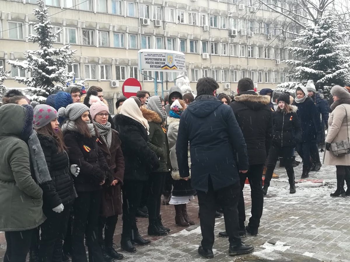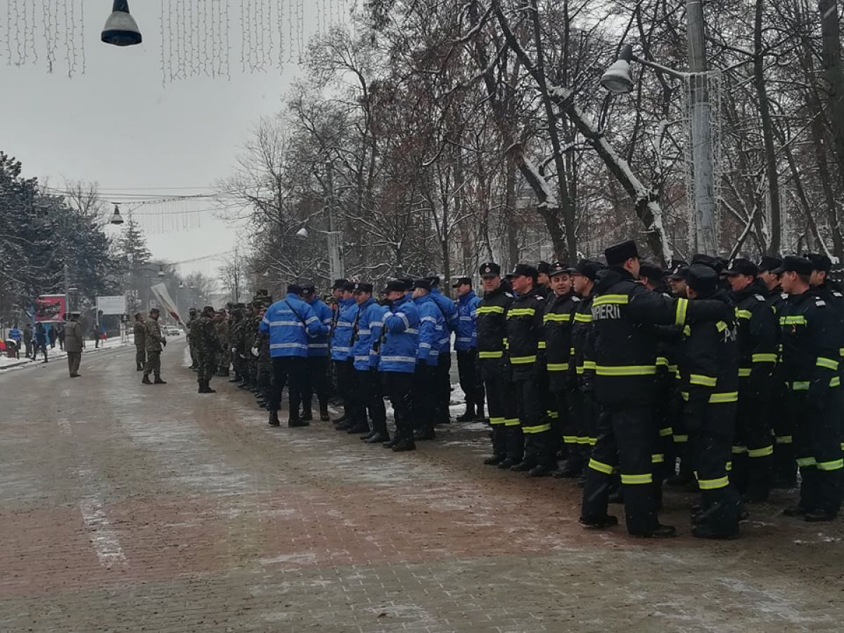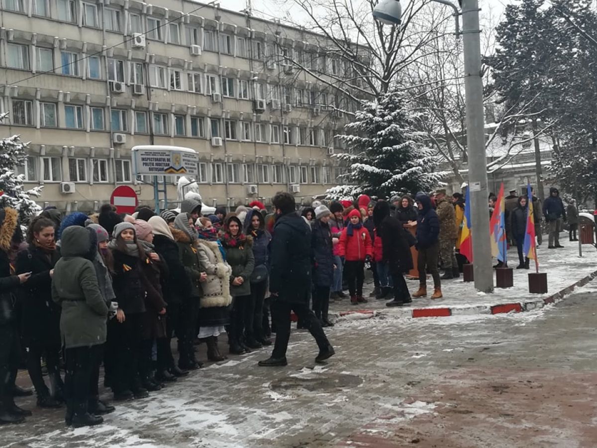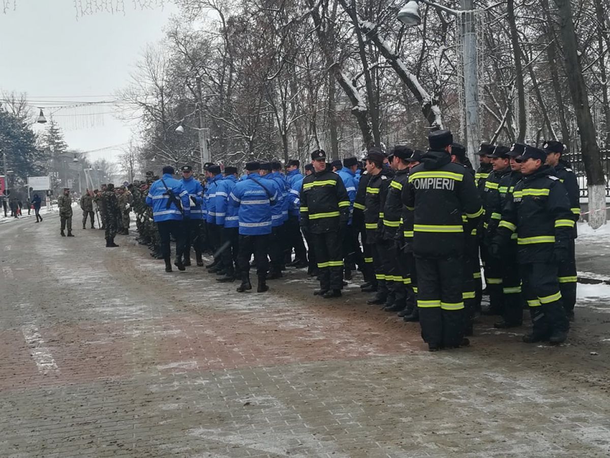Deocamdată, pregătirile sunt în toi. Zeci de botoşăneni sunt prezenţi în faţa Inspectoratului de Poliţie Judeţean (IPJ), acolo unde va avea loc întreaga ceremonie. Militarii şi civilii aşteaptă pe poziţie oficialităţile. A fost nevoie de mutarea unui autoturism pentru ca plutoanele de militari să aibă loc.