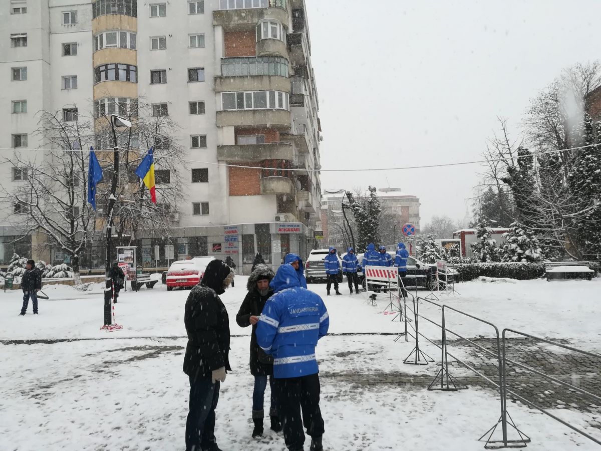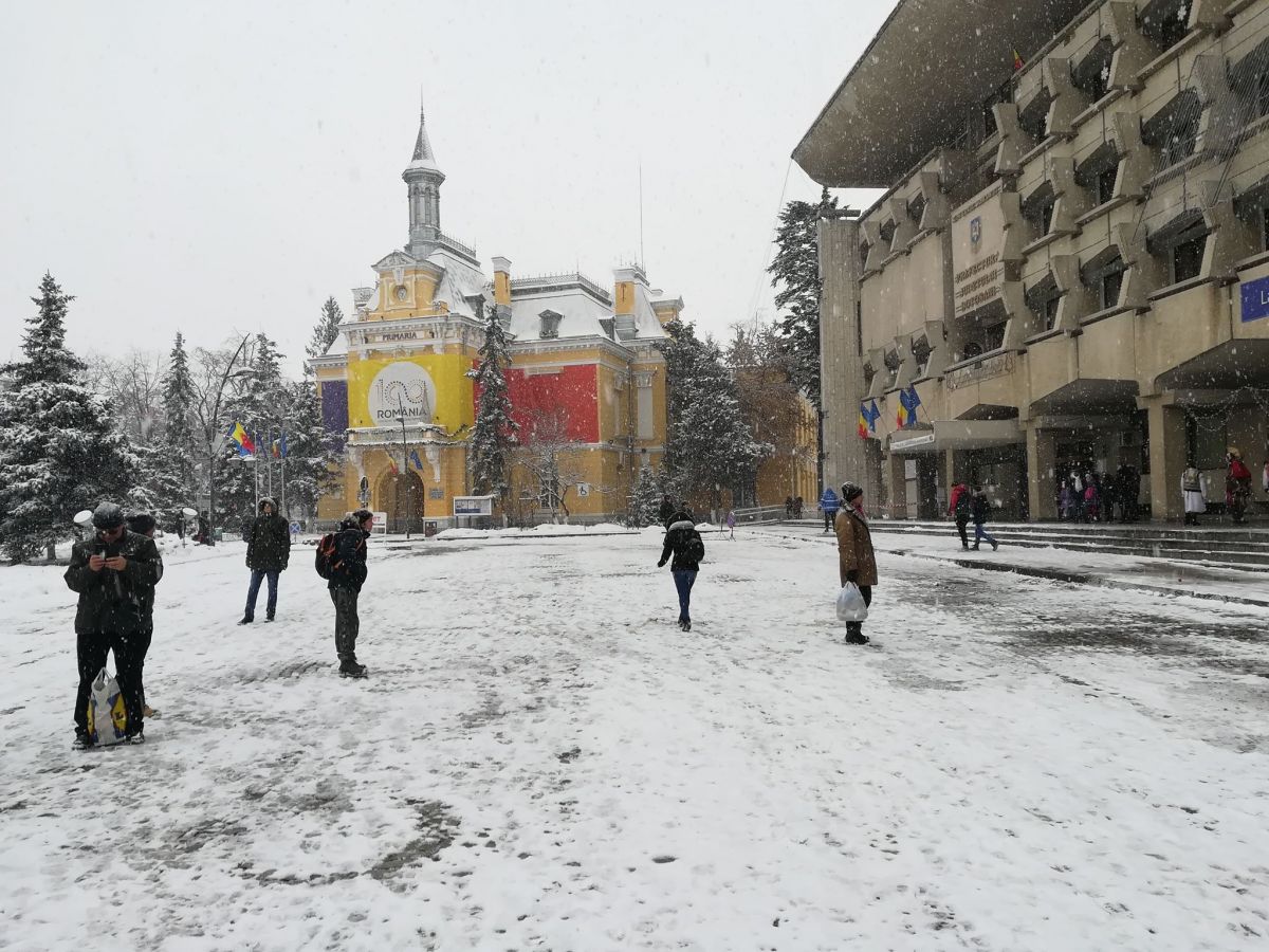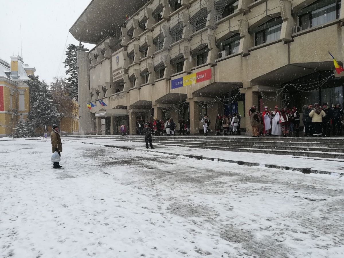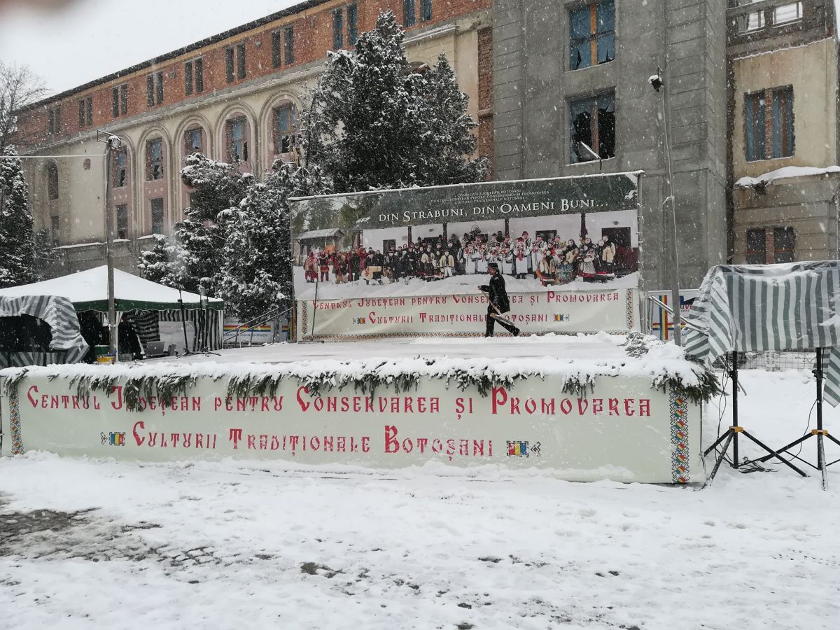 Afară ninge ca-n povești și un strat de câțiva centimetri de zăpadă s-a așternut deja peste Botoșani. Mantia alba a învăluit și Piața Revoluției unde organizatorii acestui festival de tradiție se luptă să îndepărteze cât de cât stratul de omăt.