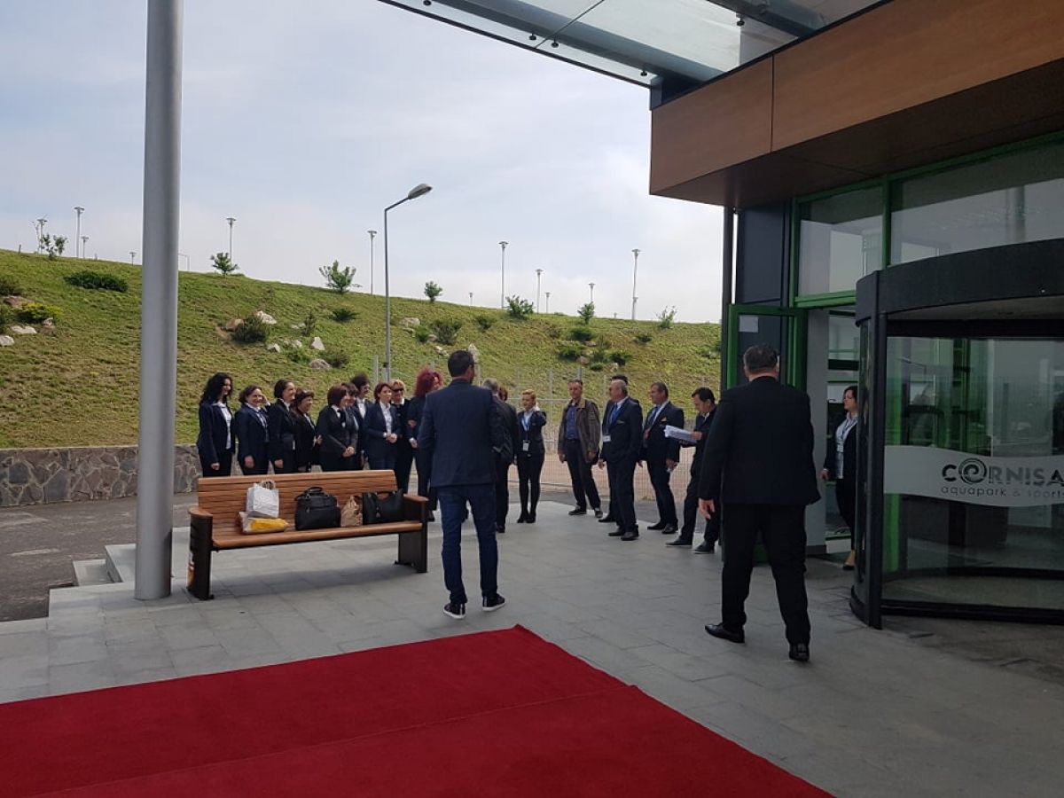 A ajuns şi primarul municipiului, Cătălin Flutur, care după ce a salutat pe toată lumea, a făcut o fotografie de grup cu angajaţii de la Cornişa şi Centrul de Informare Turistică.