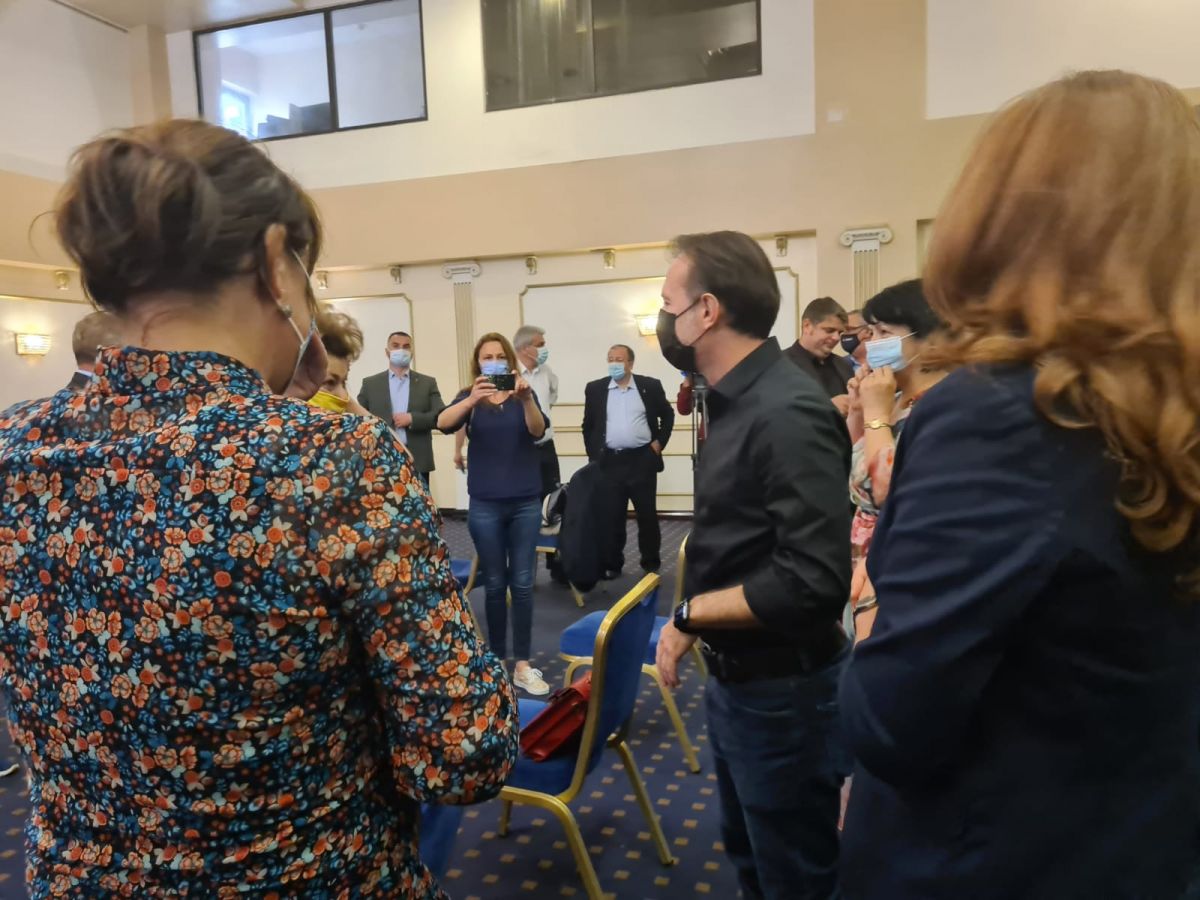 Nu se știe ce anume le-a comunicat Florin Cîțu celor prezenți în sală, pentru că ofițerii SPP au invitat jurnaliștii locali să părăsească încăperea.