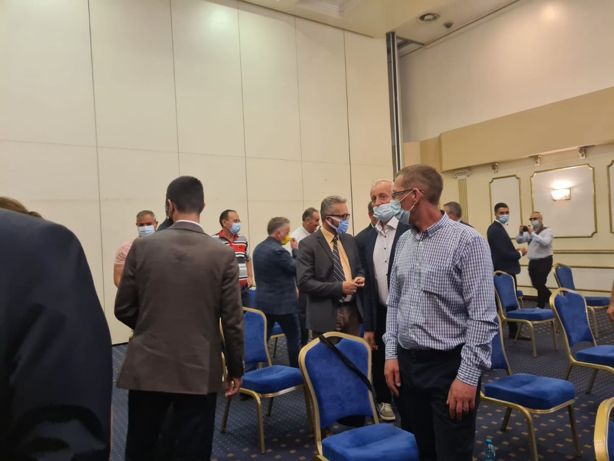 A ajuns cu o întârziere de aproximativ jumătate de oră și a oferit câteva declarați în fața hotelului, explicând faptul că vizita este una mai degrabă administrativă decât politică și că dorește să clarifice cu primarii eventuale probleme în implementarea unor investiții din teritoriu.