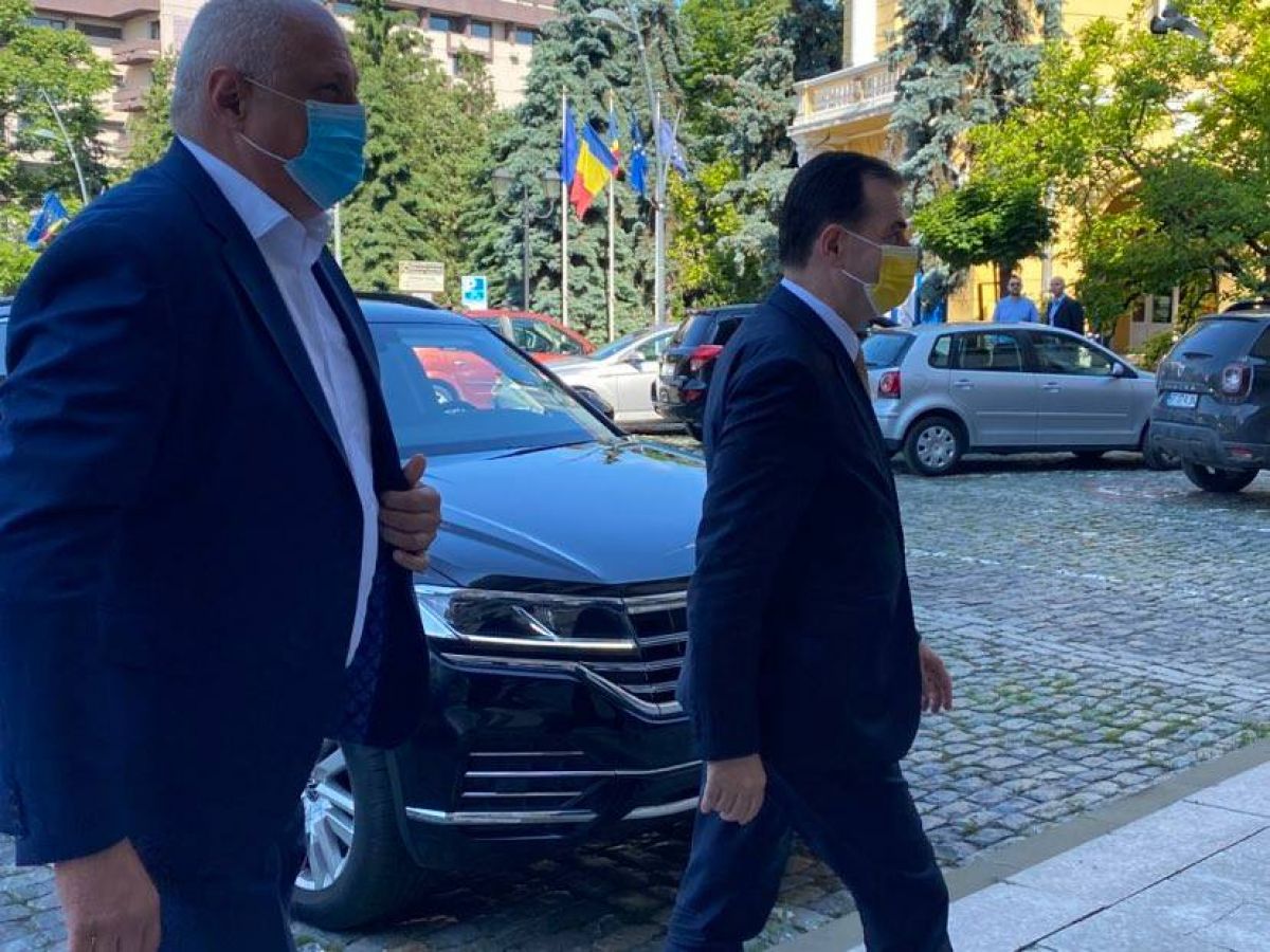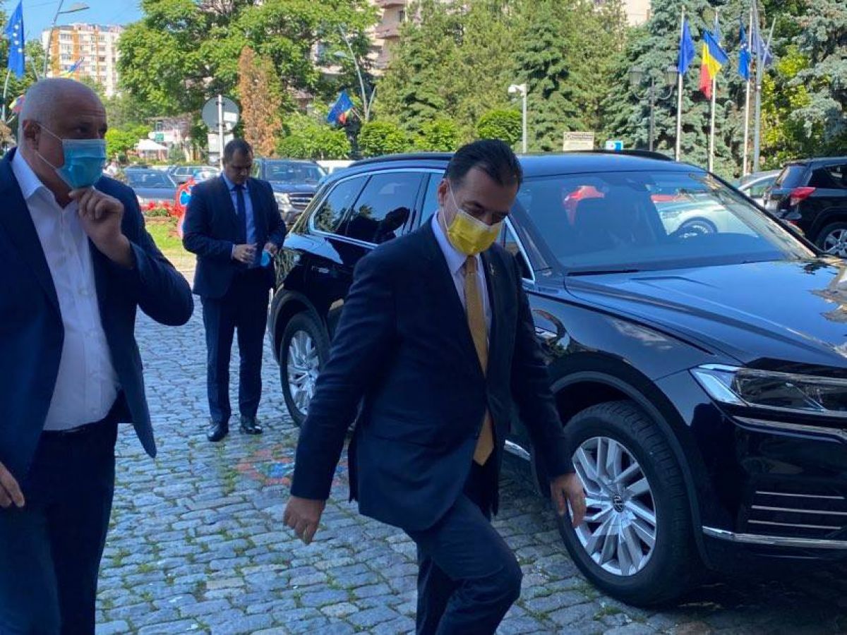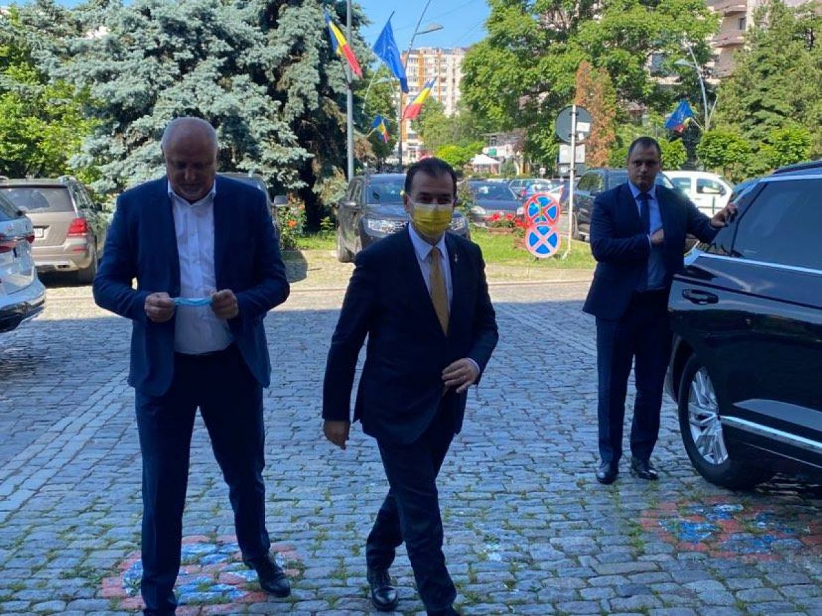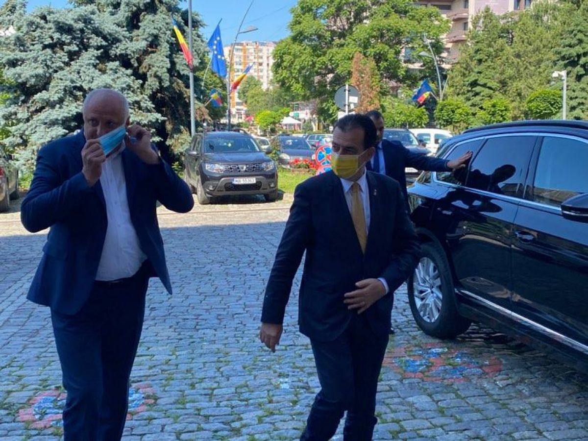 În fața Palatului Administrativ a fost așteptat de prefectul Dan Nechifor, senatorul Cristian Achiței și secretarul coordonator al PNL Botoșani, consilierul județean Sorin Cornilă, și de Dănuț Pilă, directorul Direcției Regionale de Drumuri și Poduri Iași.