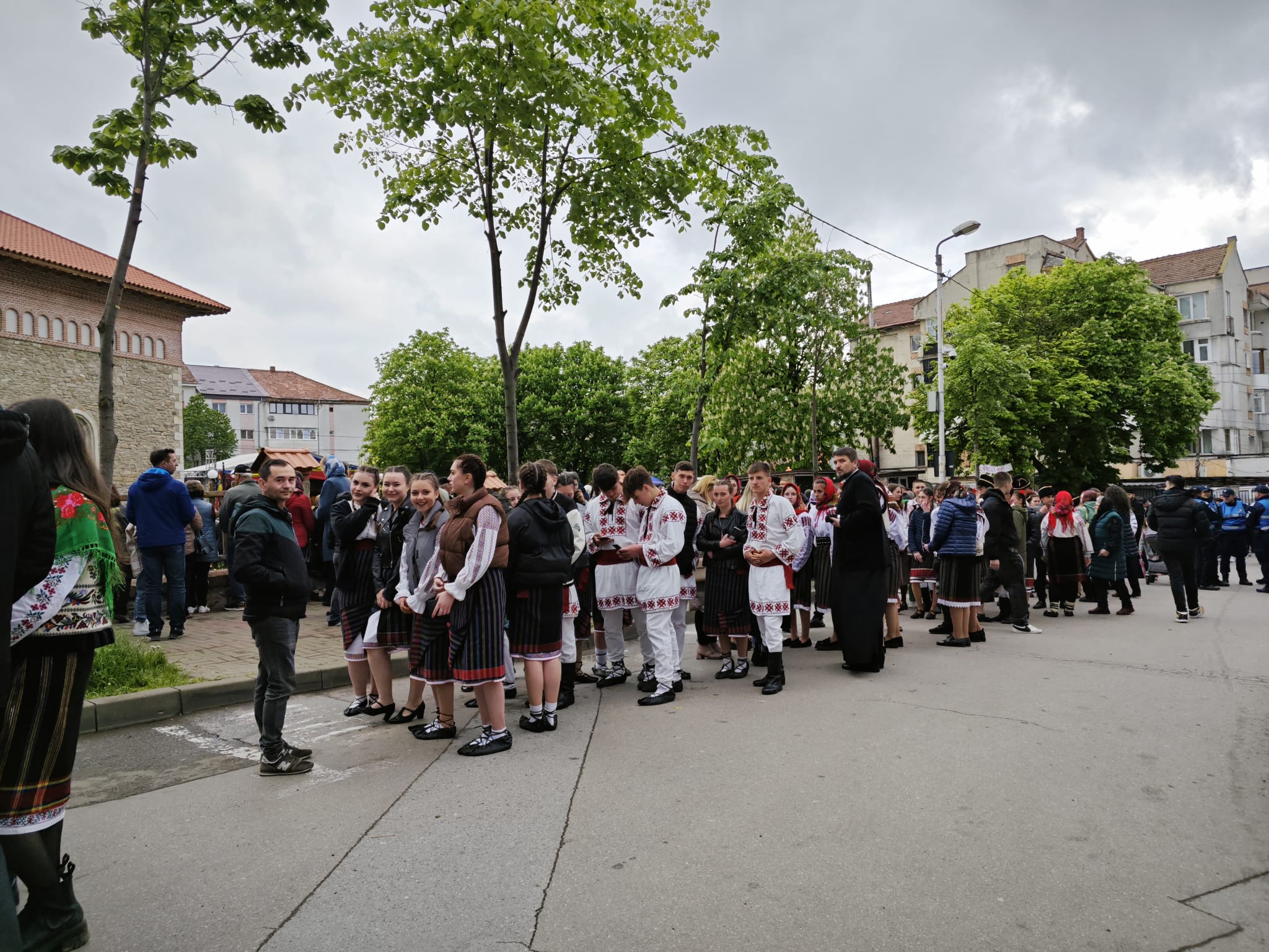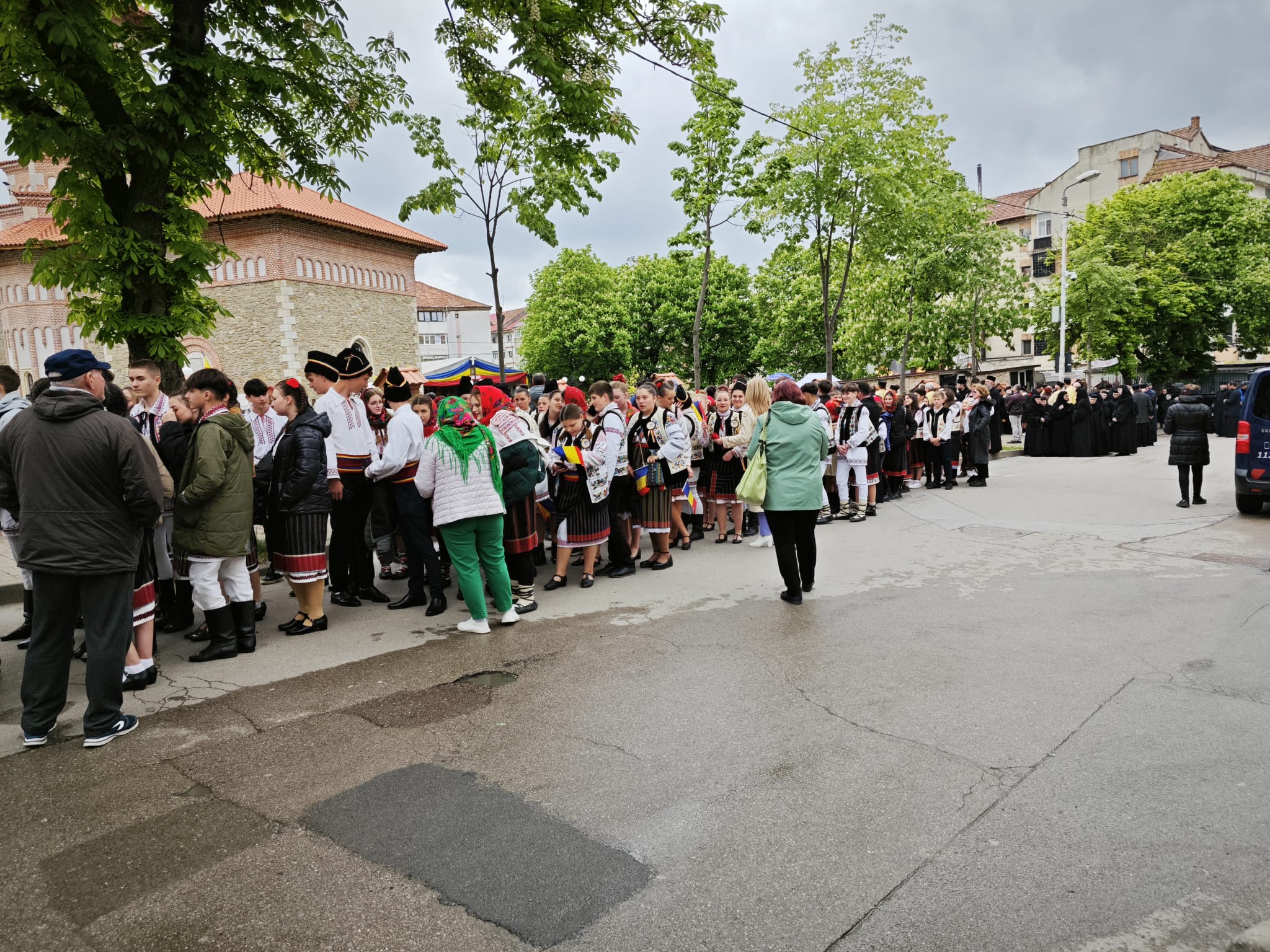 Preoți, măicuțe, copii îmbrăcați în haine preoțești, elevi în straie populare, credincioși din Botoșani și nu numai, în total circa 2.000 de oameni participă la eveniment.
