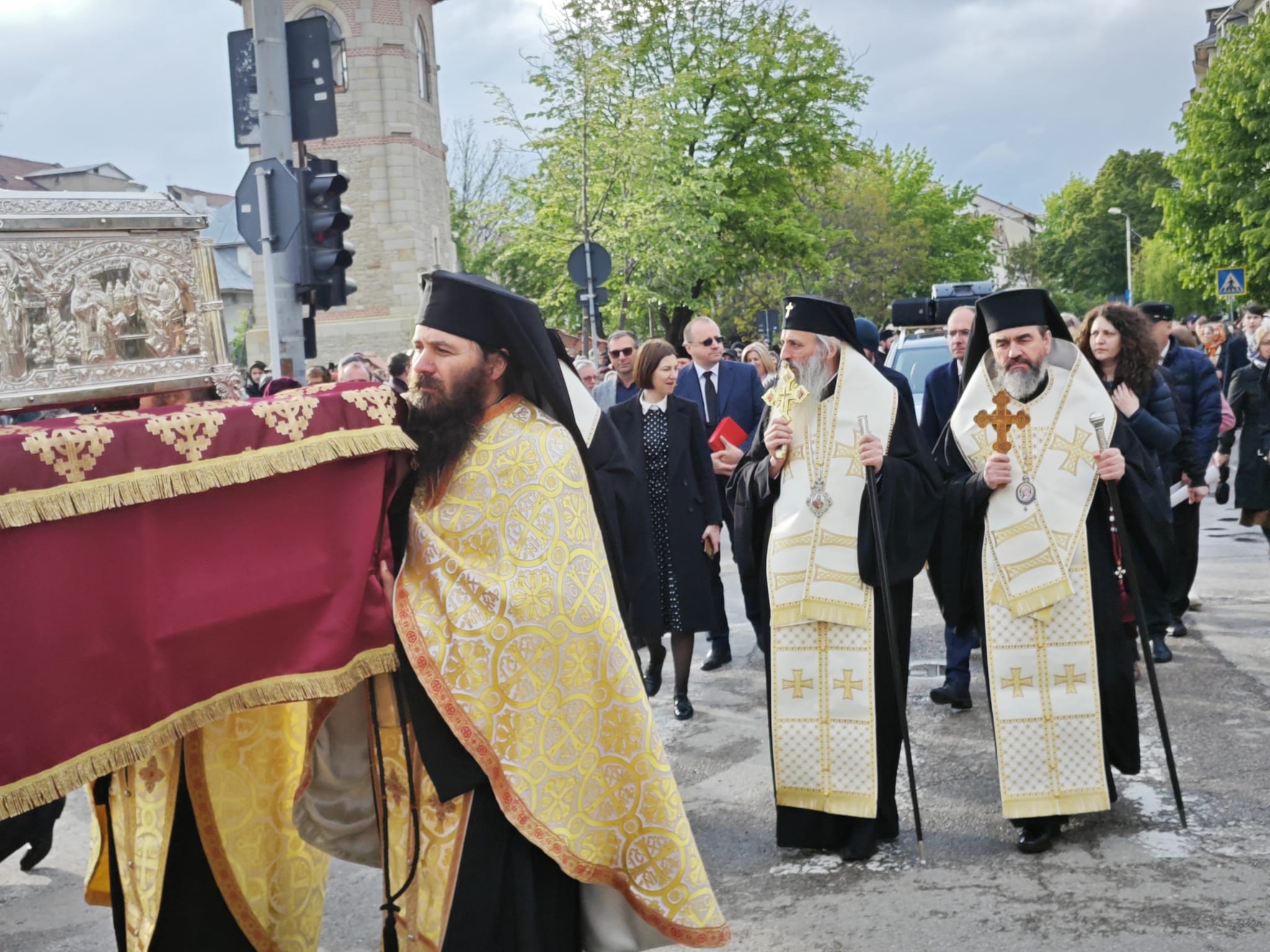 ACUM: Procesiune impresionantă pe străzile orașului cu moaștele Sfântului Ierarh Iosif cel Milostiv – VIDEO