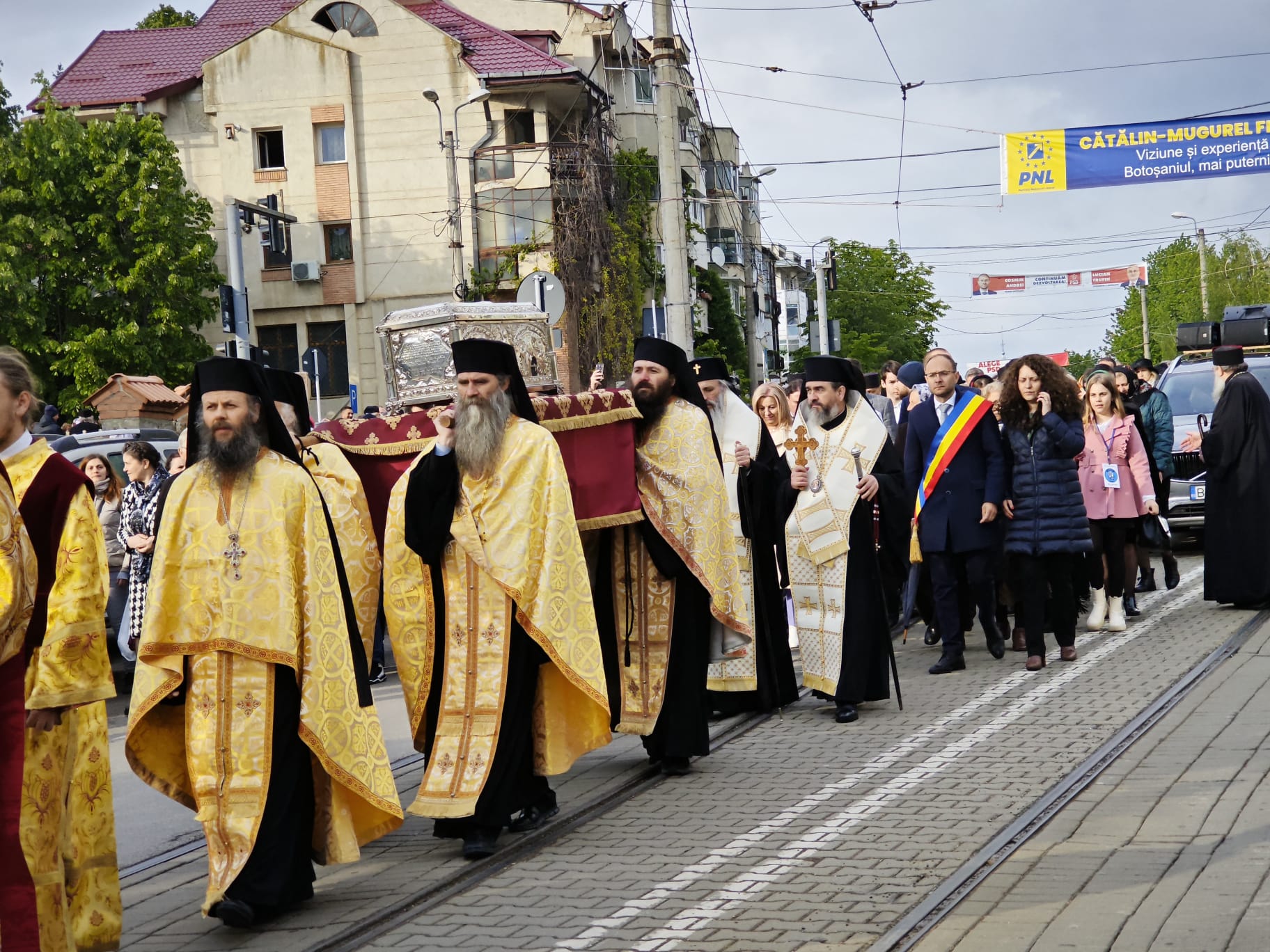 Manifestările dedicate Sfântului Mare Mucenic Gheorghe, patronul spiritual al orașului Botoșani, au început astăzi după-amiază cu primirea moaștelor la biserica ce poartă numele sfântului.