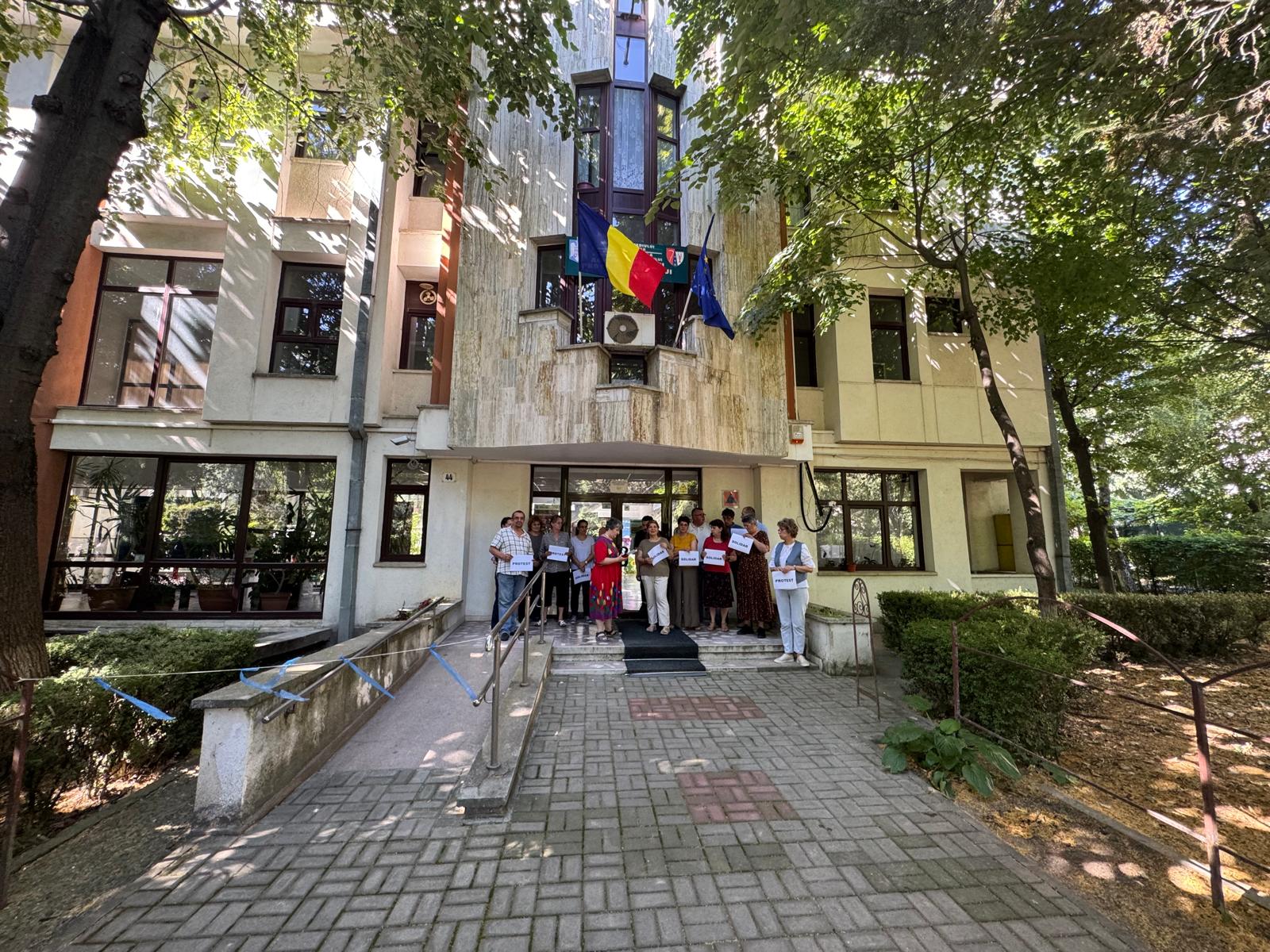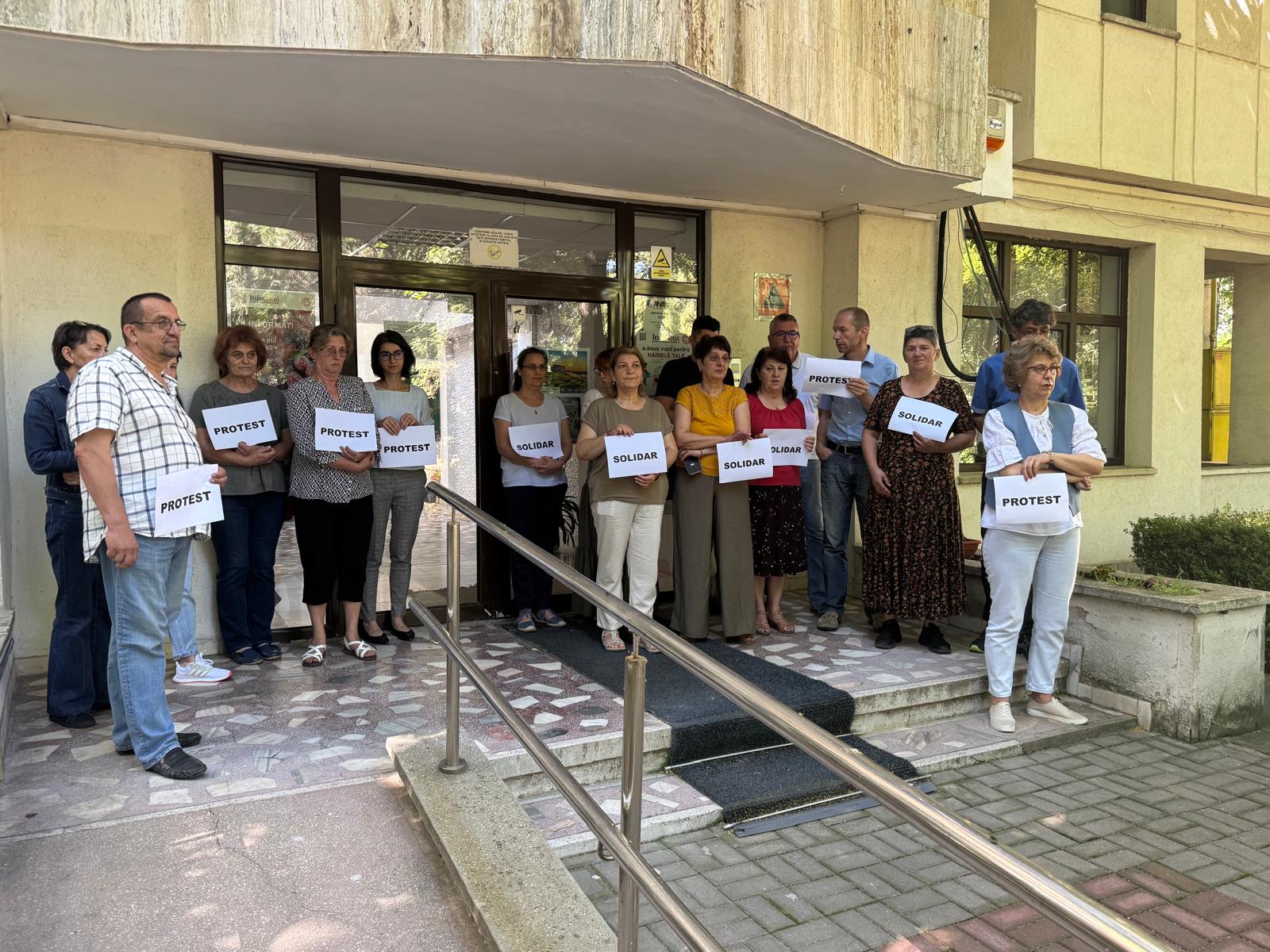 Aproape toți angajații de la Agenția pentru Protecția Mediului și de la fosta agenție de la Arii Protejate se află în aceste clipe în fața APM (Agenția pentru Protecția Mediului), cu pancarte pe care scrie „PROTEST” și „SOLIDAR”.