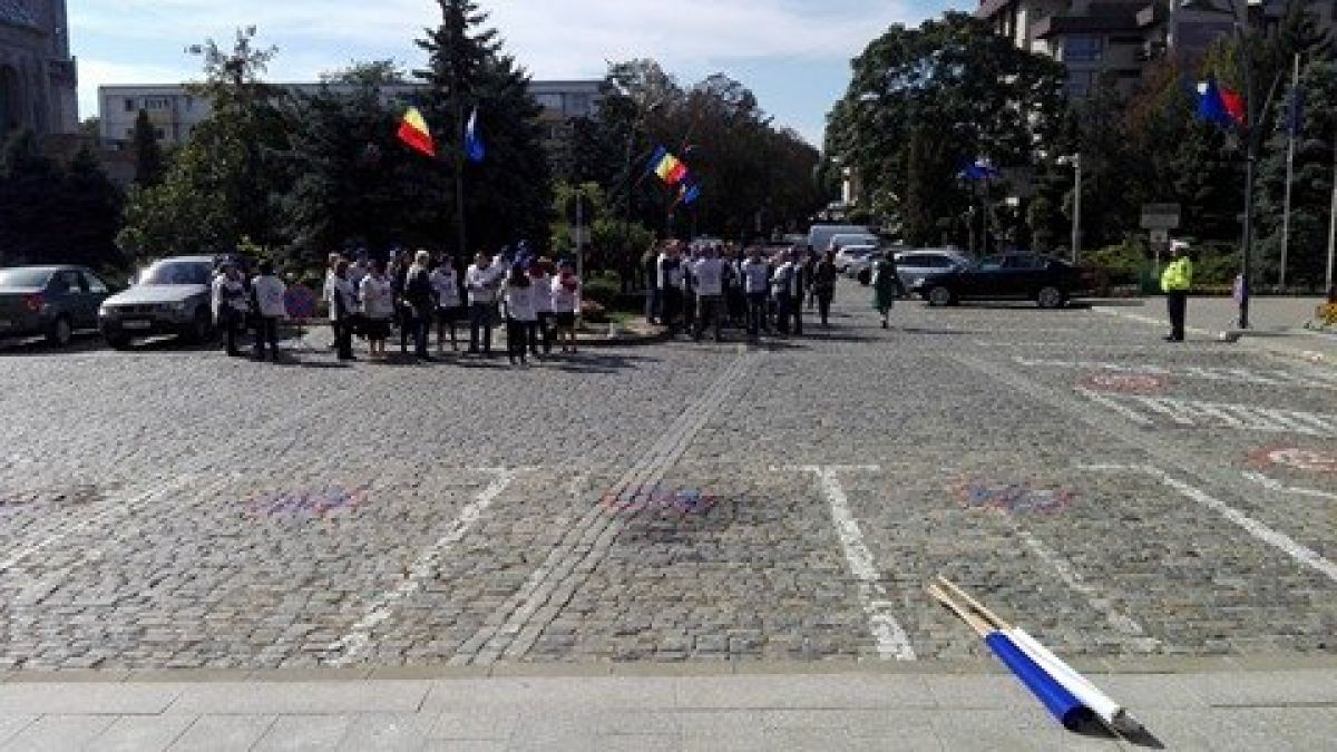 Membrii Ligii Sindicatelor din Învățământ (LSI) sunt cei care au ieşit astăzi, 3 octombrie 2017, la o acţiune de protest împotriva Guvernului PSD.