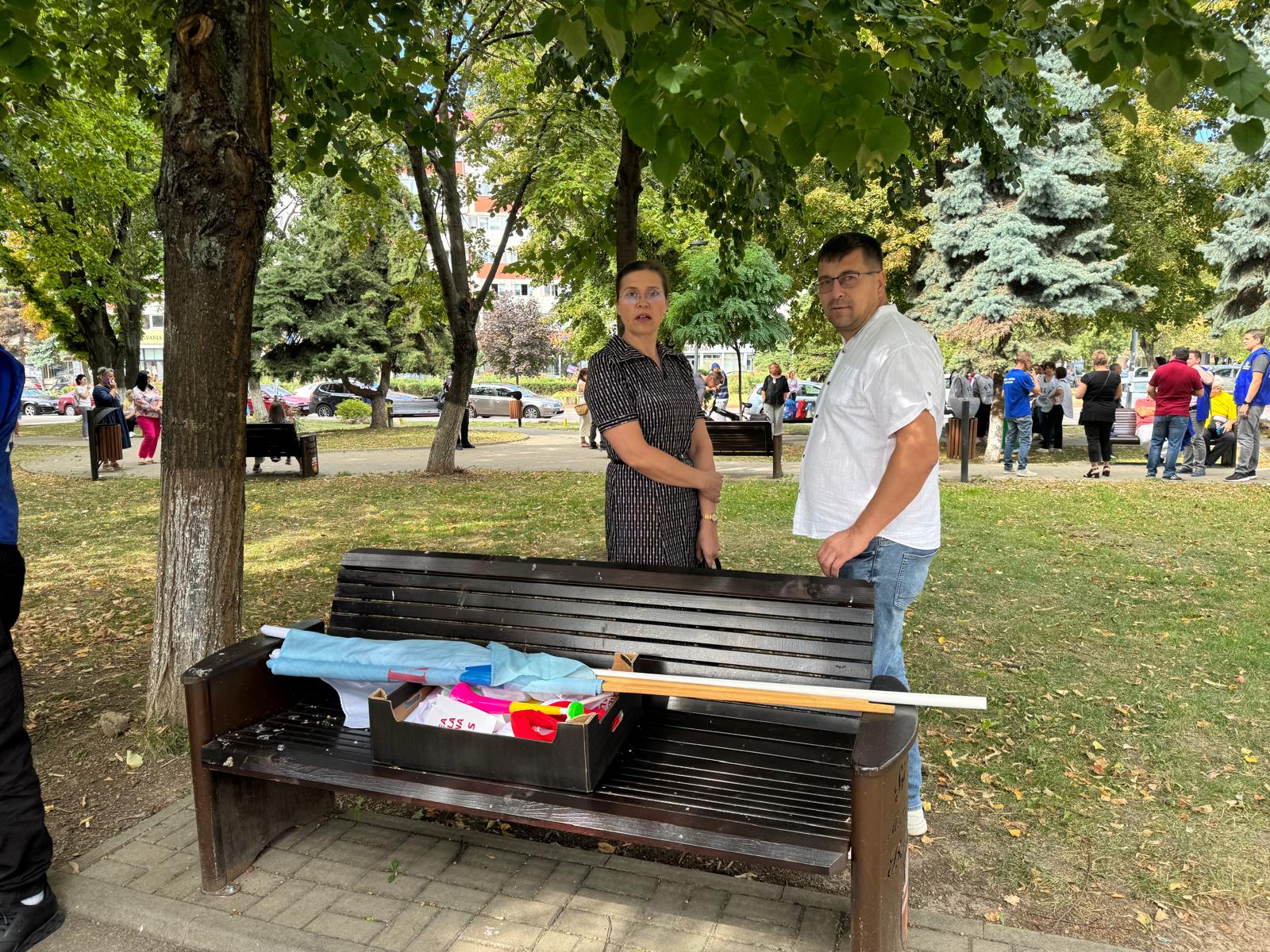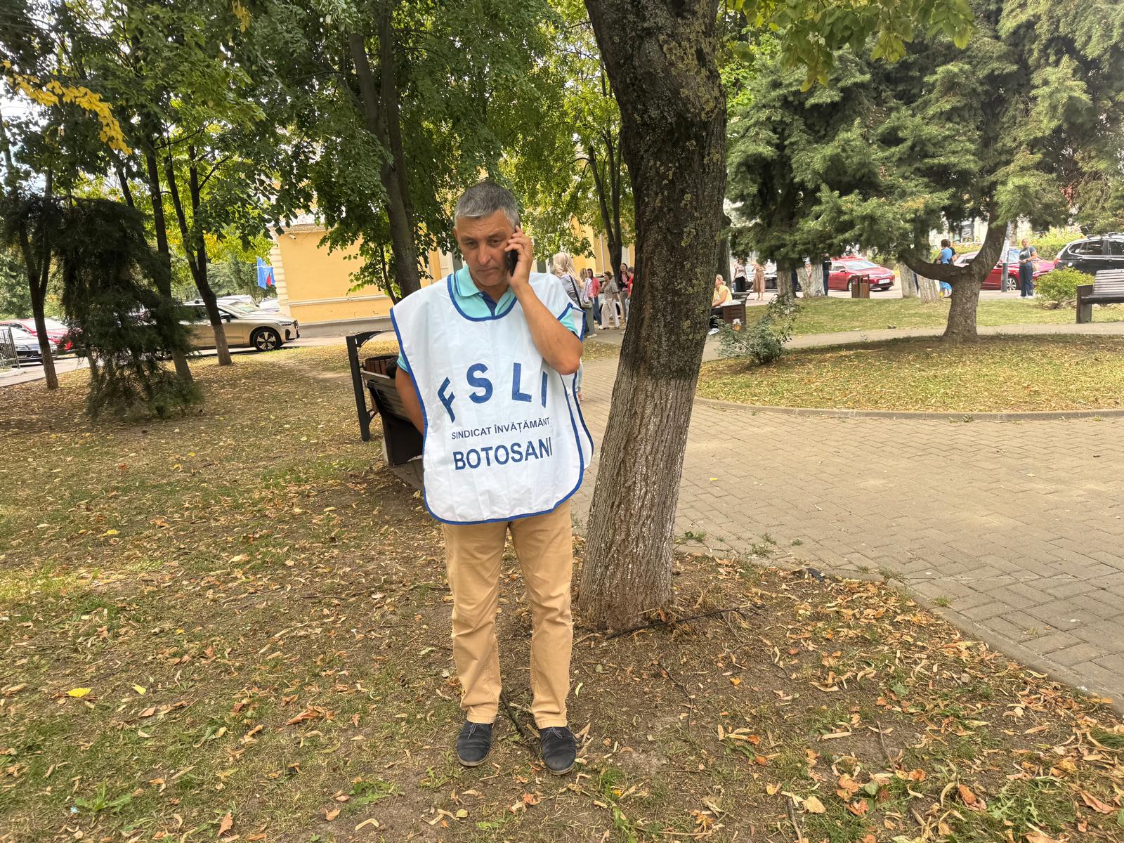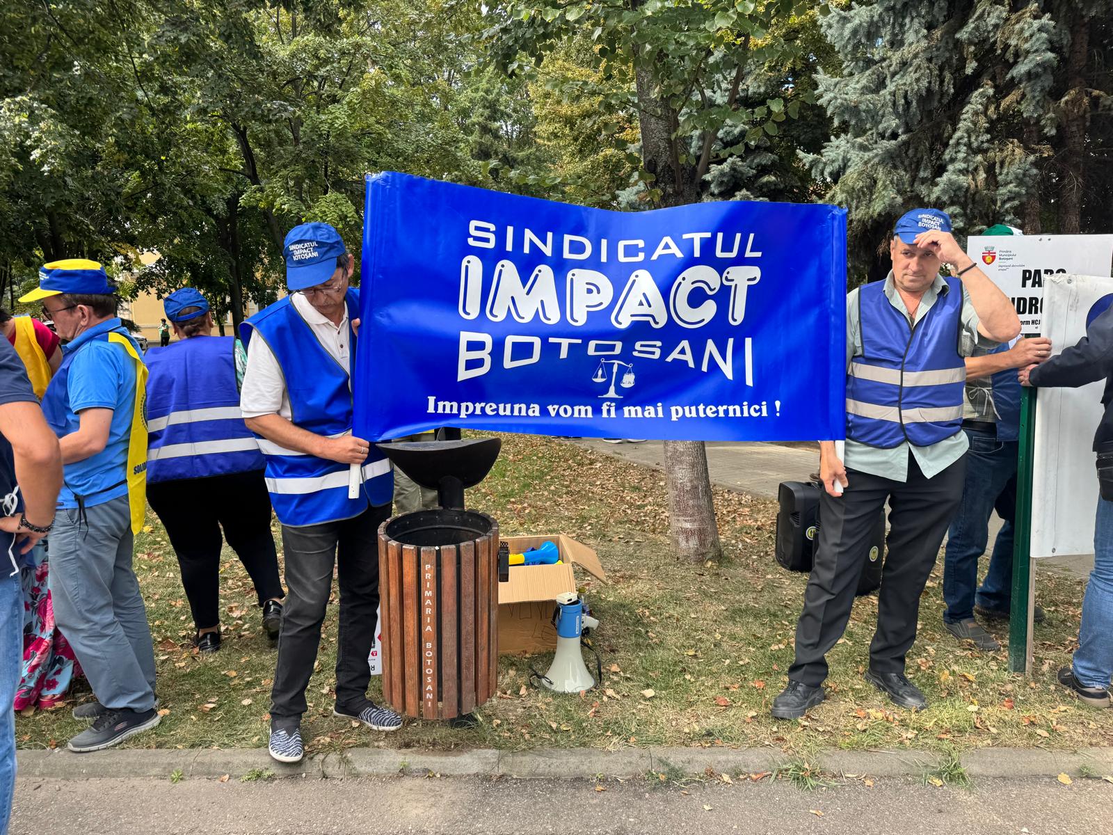 Cei aproximativ 150 de protestatari au vuvuzele, veste, pancarte și șepci. Cei mai mulți dintre participanți stau răsfirați în parcul din spatele sediului PSD Botoșani.