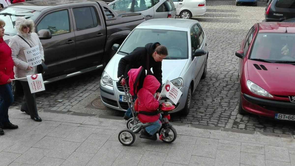 În jur de 30 de angajați ai unității medicale se află în fața instituției cu pancarte sau steaguri. La protest participă și un copil care pare să aibă în jur de patru - cinci ani, în cărucior și căruia i s-a dat un steag cu însemnul Uniunii Sindicale. Protestatarii au izbucnit la adresa ziariștilor, fiind revoltați de faptul că mass-media a reflectat în spațiul public salariile de care beneficiază unii dintre ei, în proporție de 30% și care sunt cuprinse între pragurile de 3.000 și 7.000 de lei. Unii dintre ei și-au adus fluturașul de salariu pentru a demonstra că nu beneficiază de drepturile salariale vehiculate în presă. Ei au contestat lista făcută publică de conducerea Spitalului Județean și au arătat că vor adresa întrebări șefilor privitoare la acele salarii. Lia Temciuc, liderul Sindicatului Sanitas susține că protestul este unul pe o perioadă nelimitată și zilnic de la ora 11.00 asistenții medicali se vor prezenta în fața CJ Botoșani, până când se va găsi o soluție pentru revendicările pe care le au.
