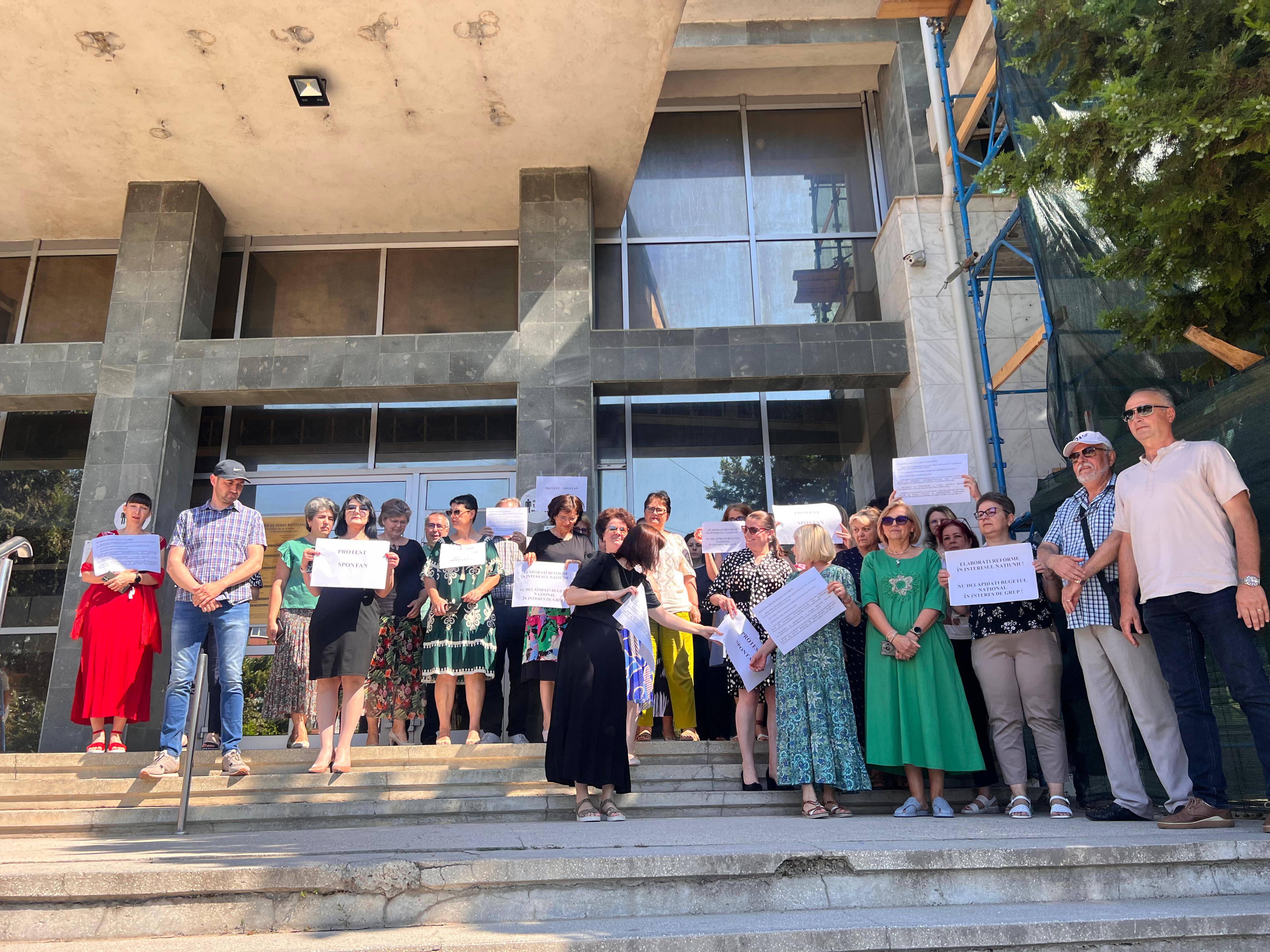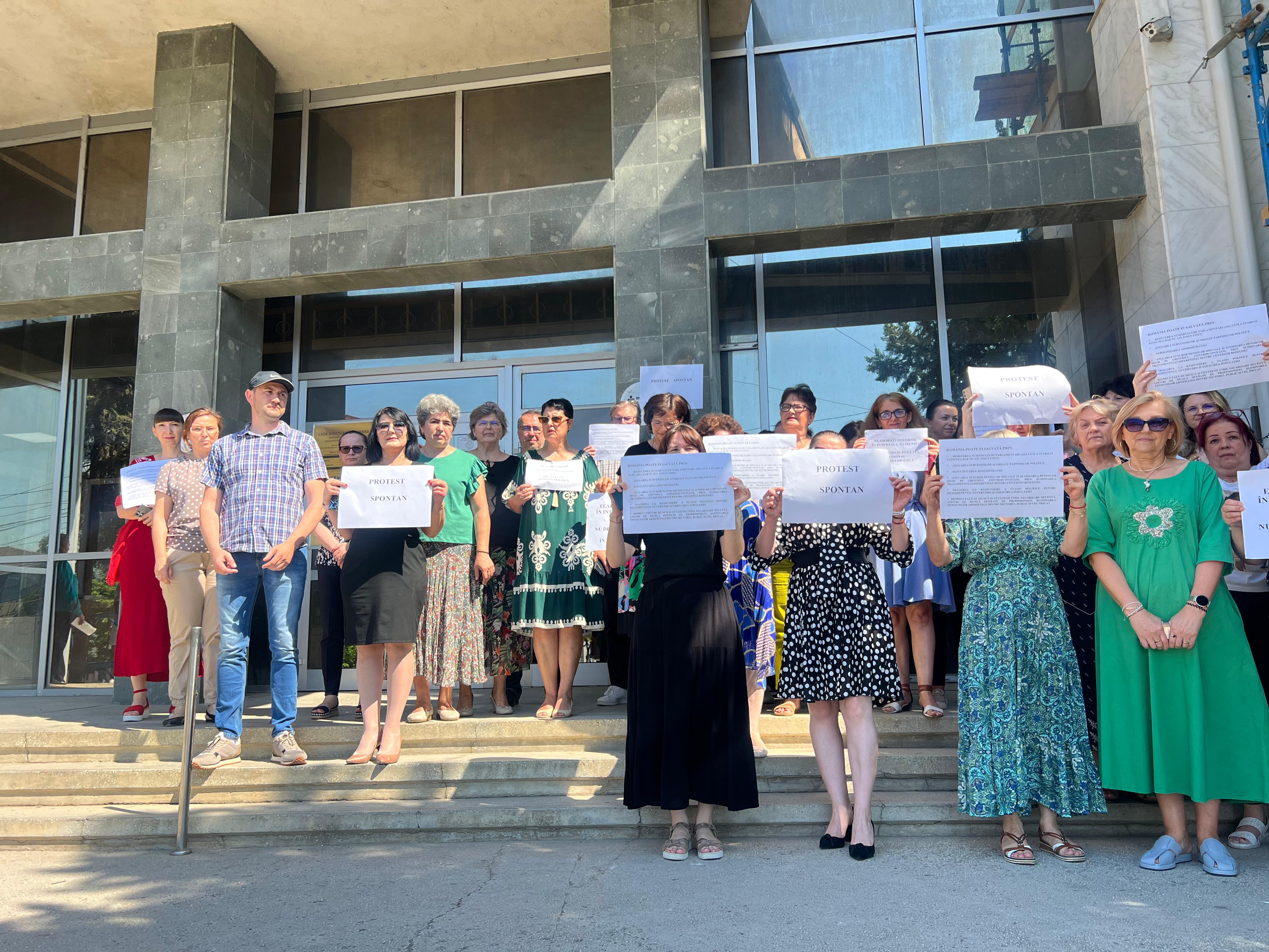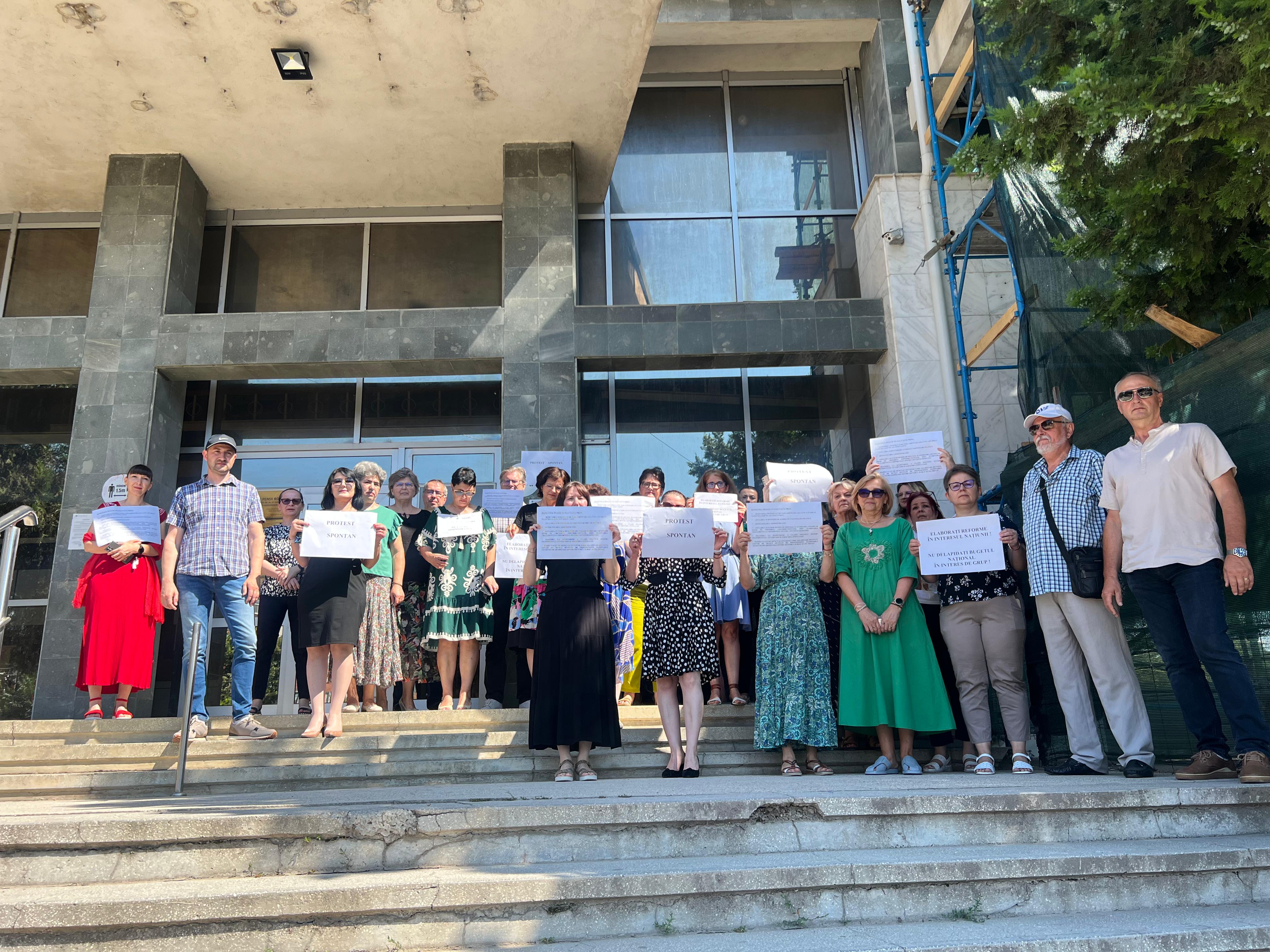 După Sistemul de Gospodărire a Apelor (SGA) și Direcția Județeană pentru Protecția Mediului, astăzi au întrerupt activitatea salariații din cadrul Casei Județene de Pensii Botoșani. Aceștia au ieșit pe treptele instituției în intervalul 10:00 – 12:00. Participă la un protest spontan la care sunt afișate tot felul de mesaje adresate actualului Guvern.