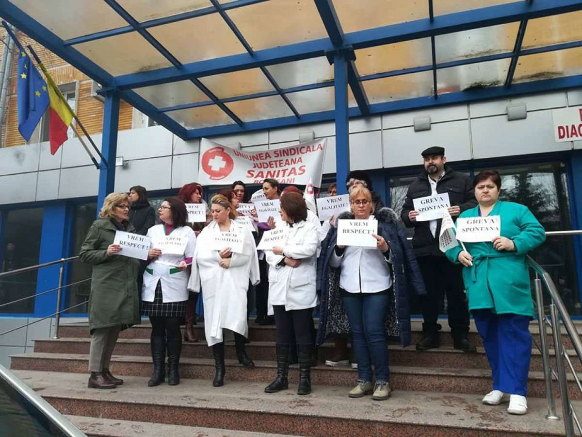 În aceste momente angajaţii de la Laboratorul de Analize Medicale au ieşit în faţa spitalului şi vor protesta timp de două ore.