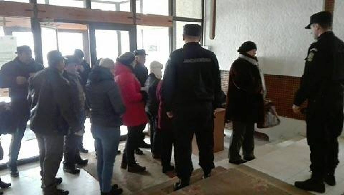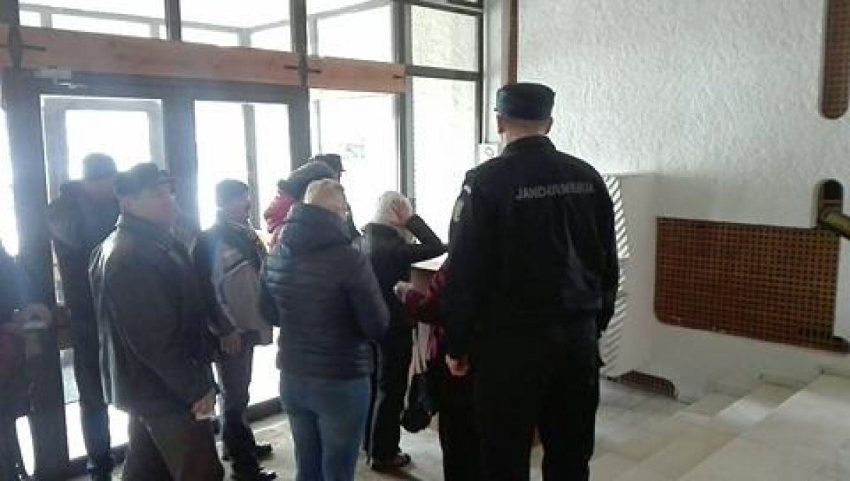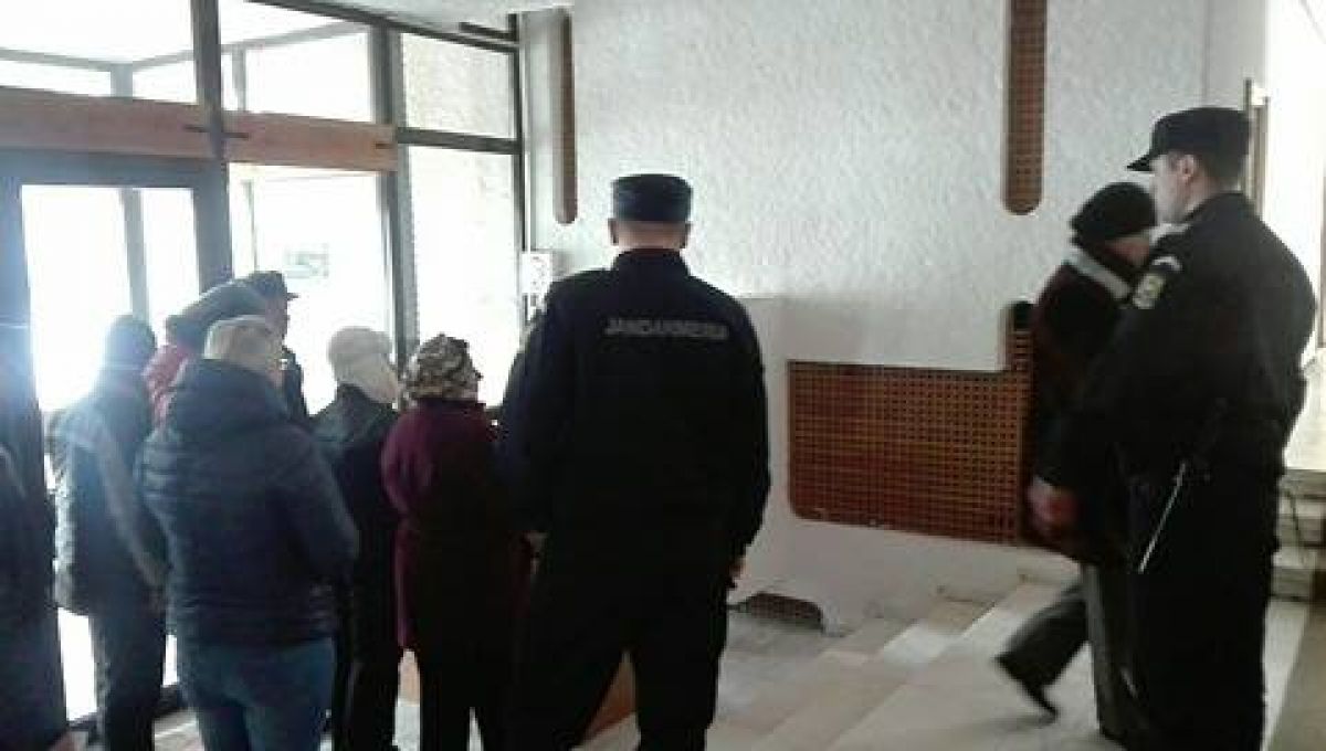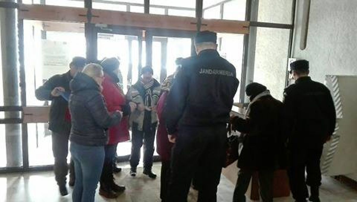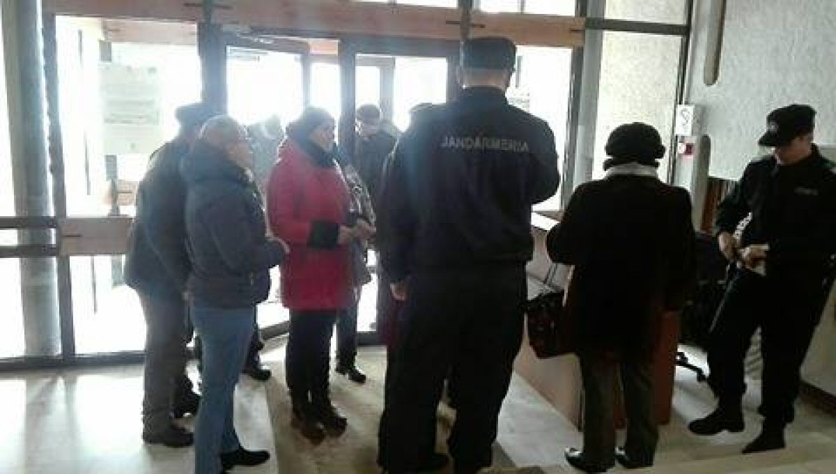 Deocamdată oamenii așteaptă în fața instituției sa se adune mai multe persoane.