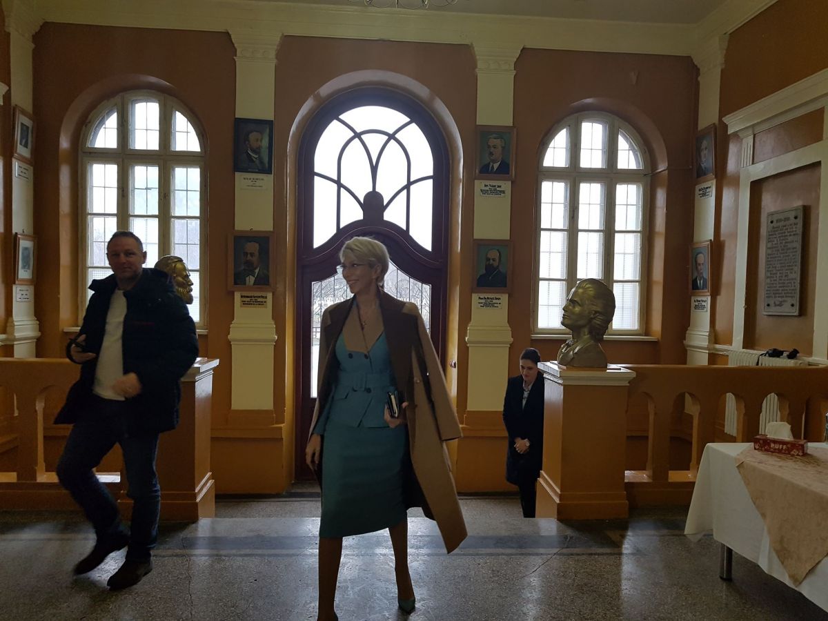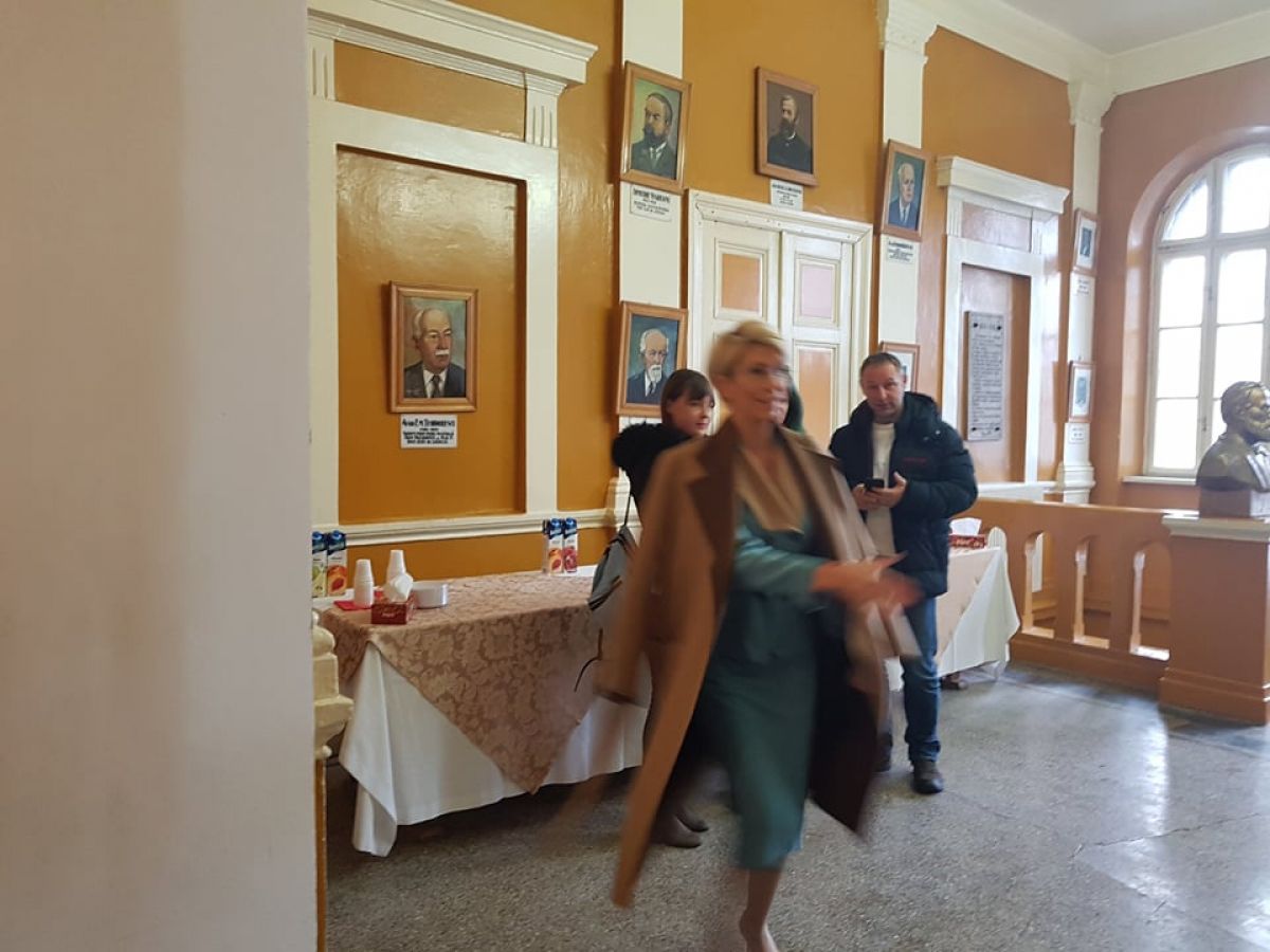 Ea a intrat în cancelarie, unde continuă discuțiile cu foștii și actualii profesori ai Colegiului.