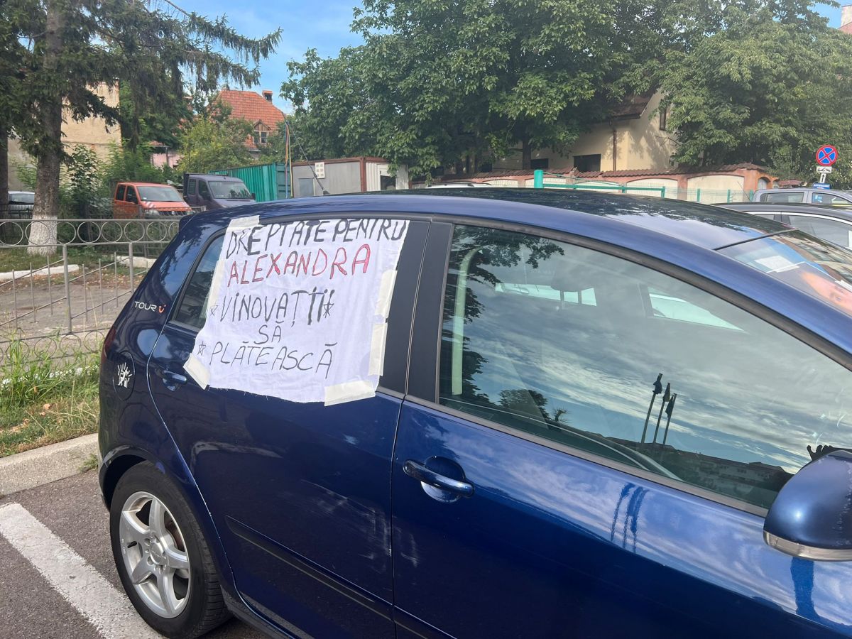 S-au alăturat demersului și mai mulți taximetriști care și-au lipit pe geamurile mașinilor fotografii cu Alexandra, cu mesajul „Nu am aer”.