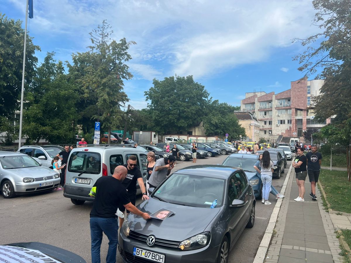 Zeci de mașini s-au adunat deja în parcarea de la Centrul Militar Județean, iar șoferii încearcă să găsească un loc de staționare pentru a porni în marșul anunțat pe străzile orașului.