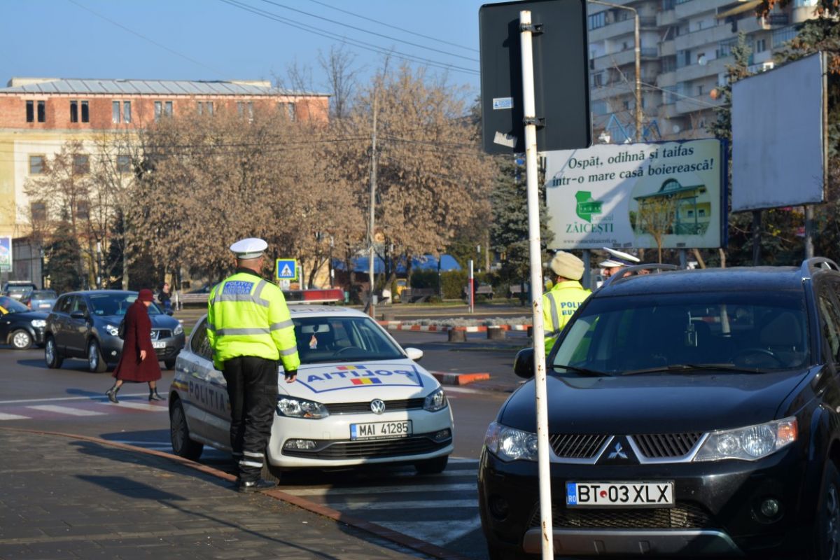 Dată fiind afluența mare de oameni, în stradă, mai multe echipaje de Poliție dirijează circulația.