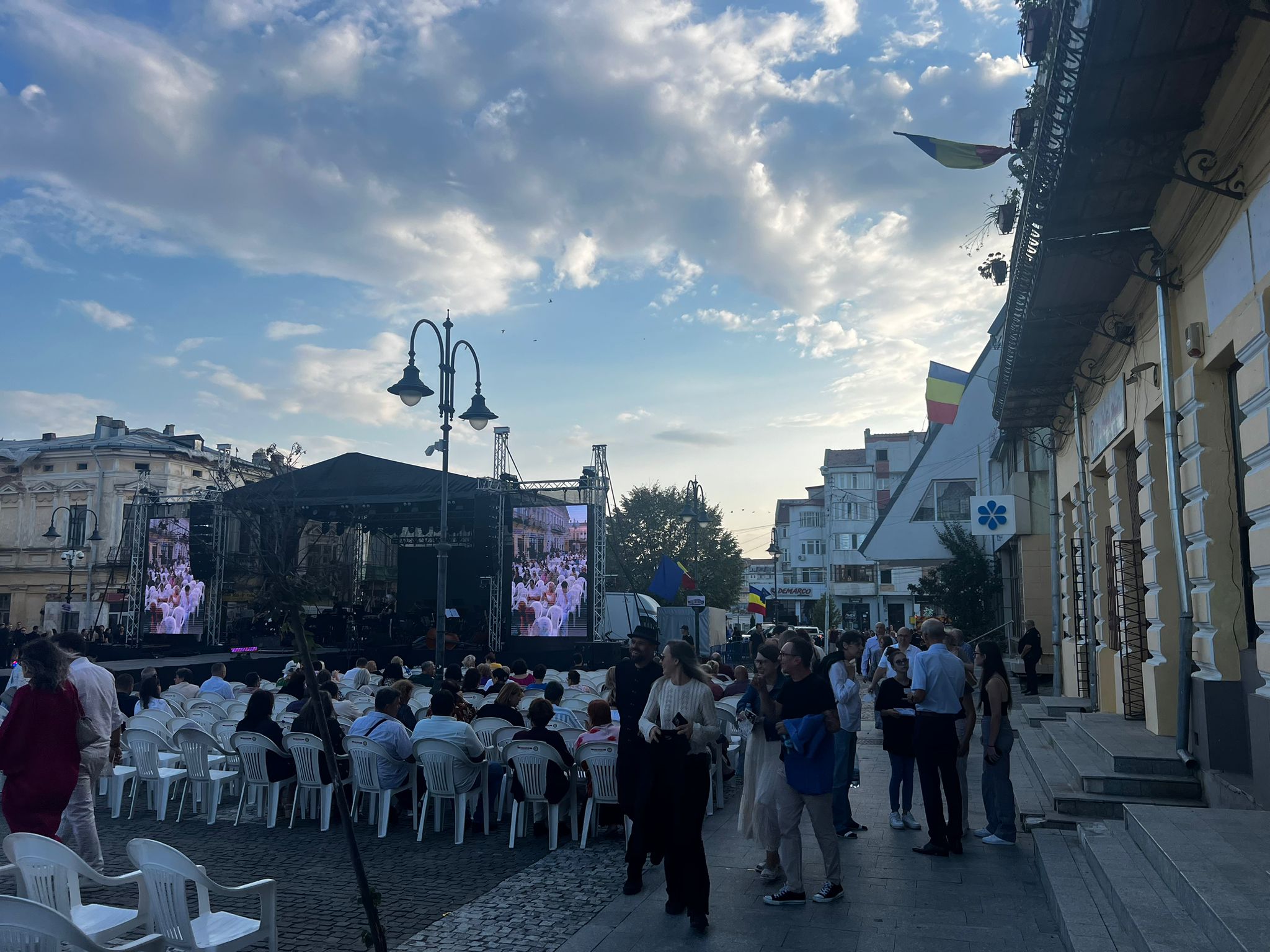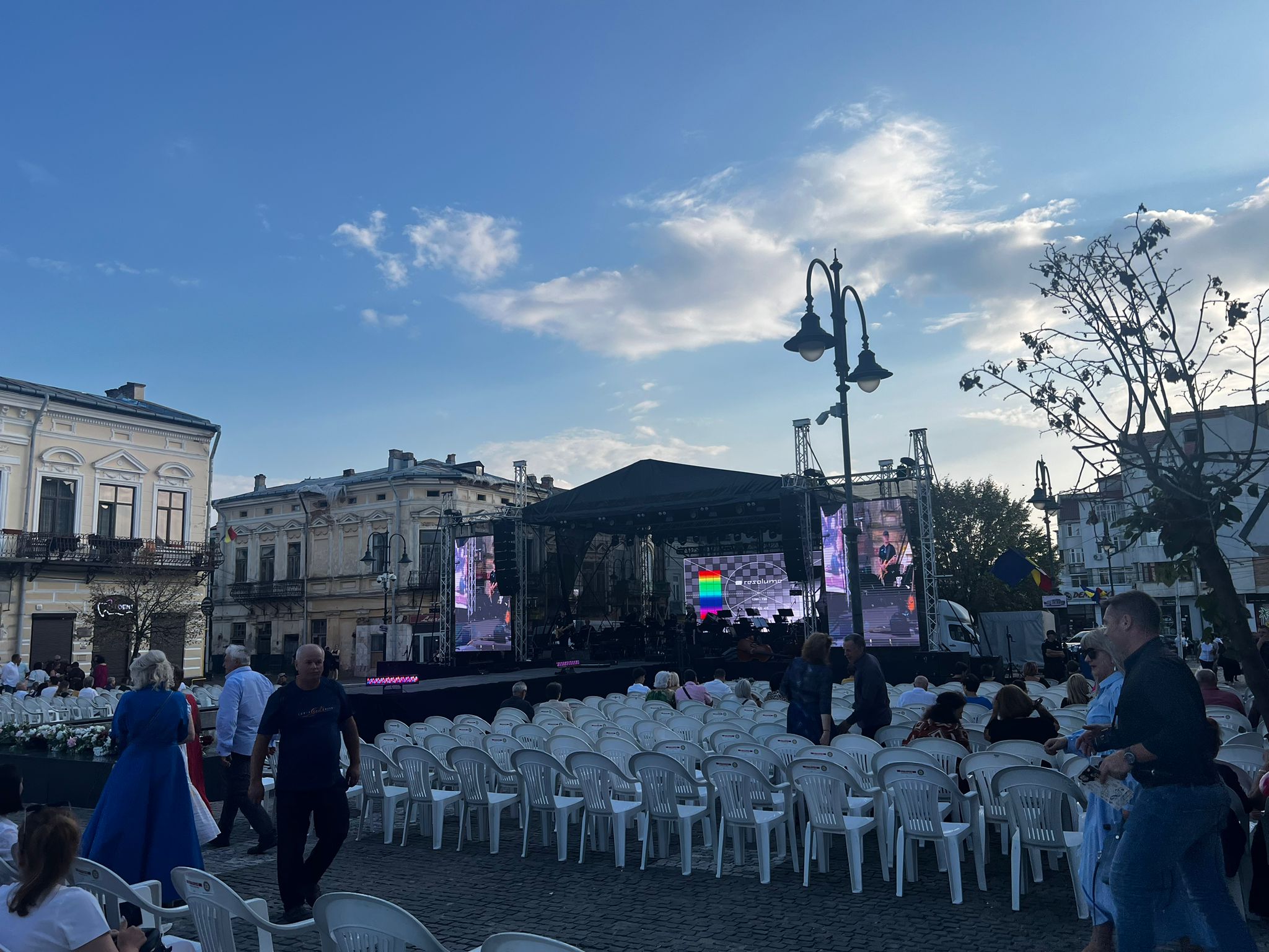 În Centrul Vechi au fost puse astăzi dimineață 1.500 de scaune. În aceste momente pe scenă au loc repetiții.