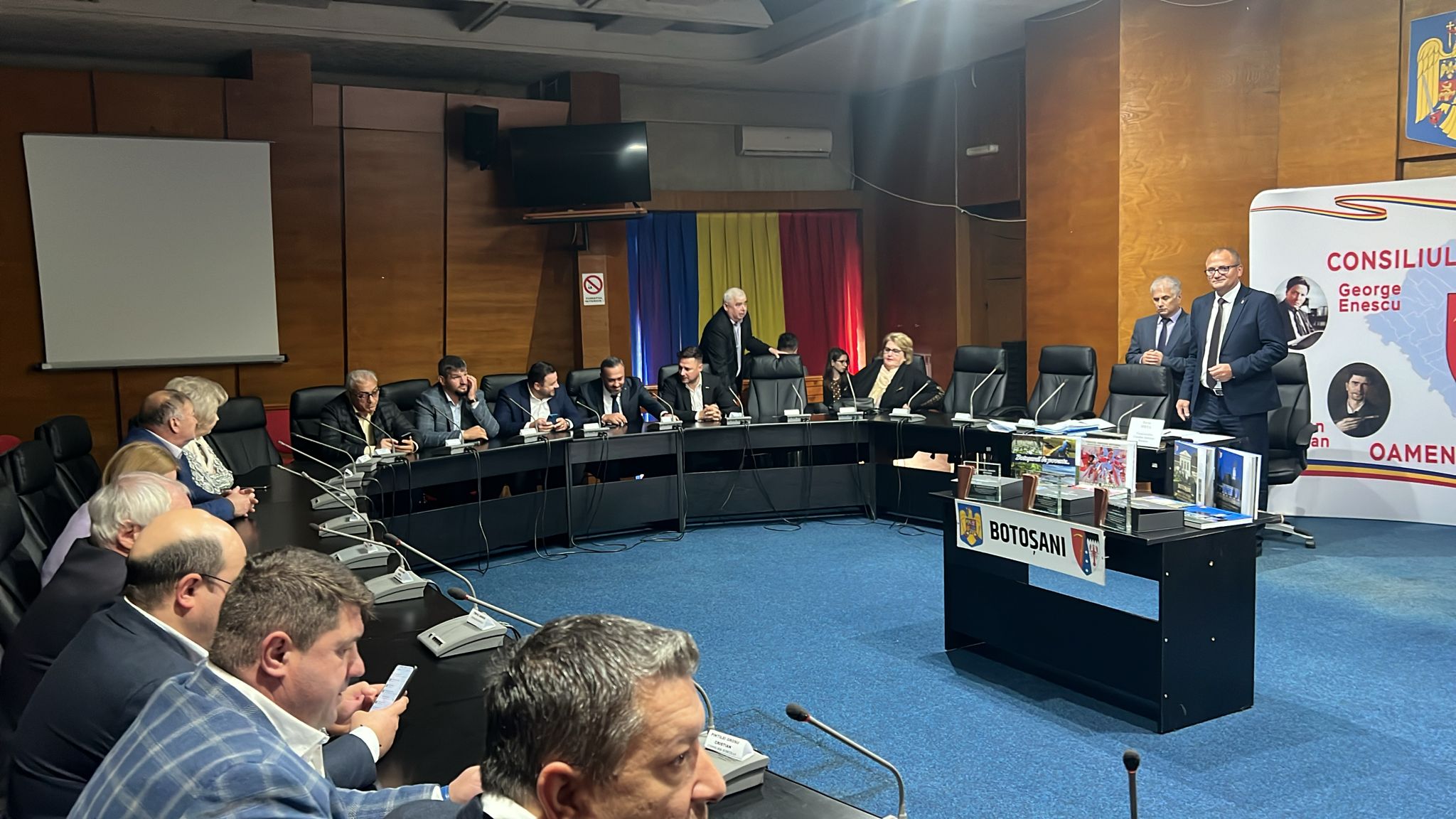 Ședința are un caracter festiv, fiind pregătite inclusiv buchete de flori care vor și oferite cel mai probabil președintelui CJ, Doina Federovici.