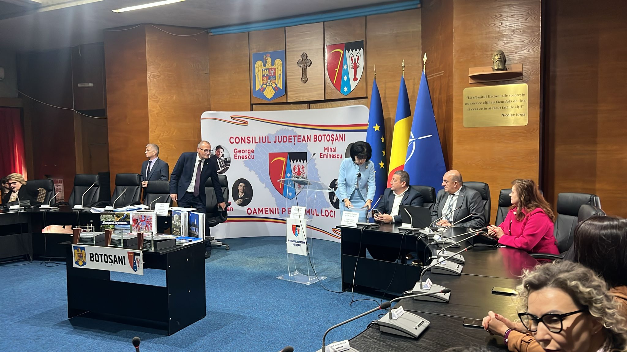De asemenea, în mijlocul sălii a fost amplasată o mică expoziție cu cărți cu simbolistică pentru județul Botoșani.