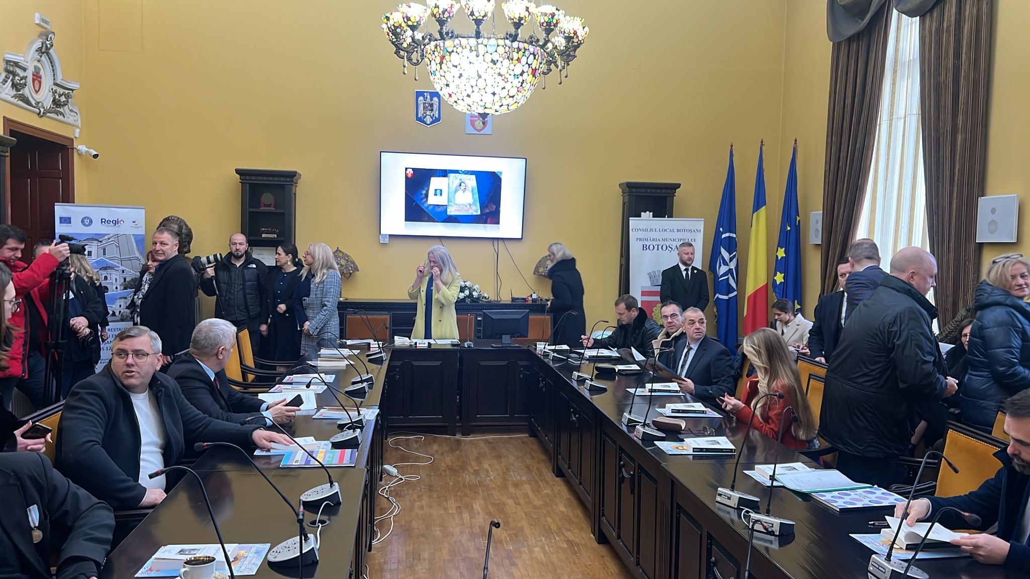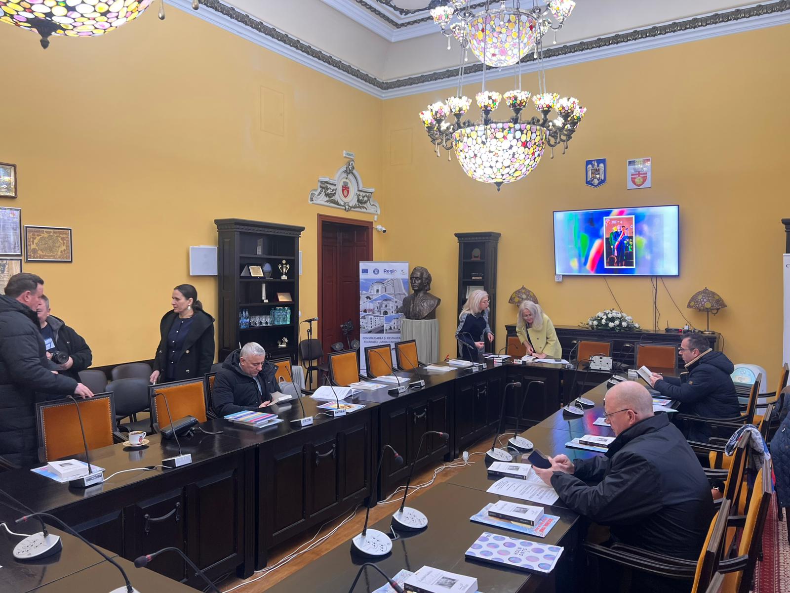 Ședința are loc în sala care-i poartă numele poetului nepereche, de la etajul unu al Primăriei.