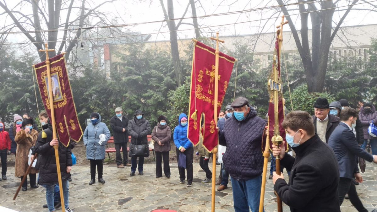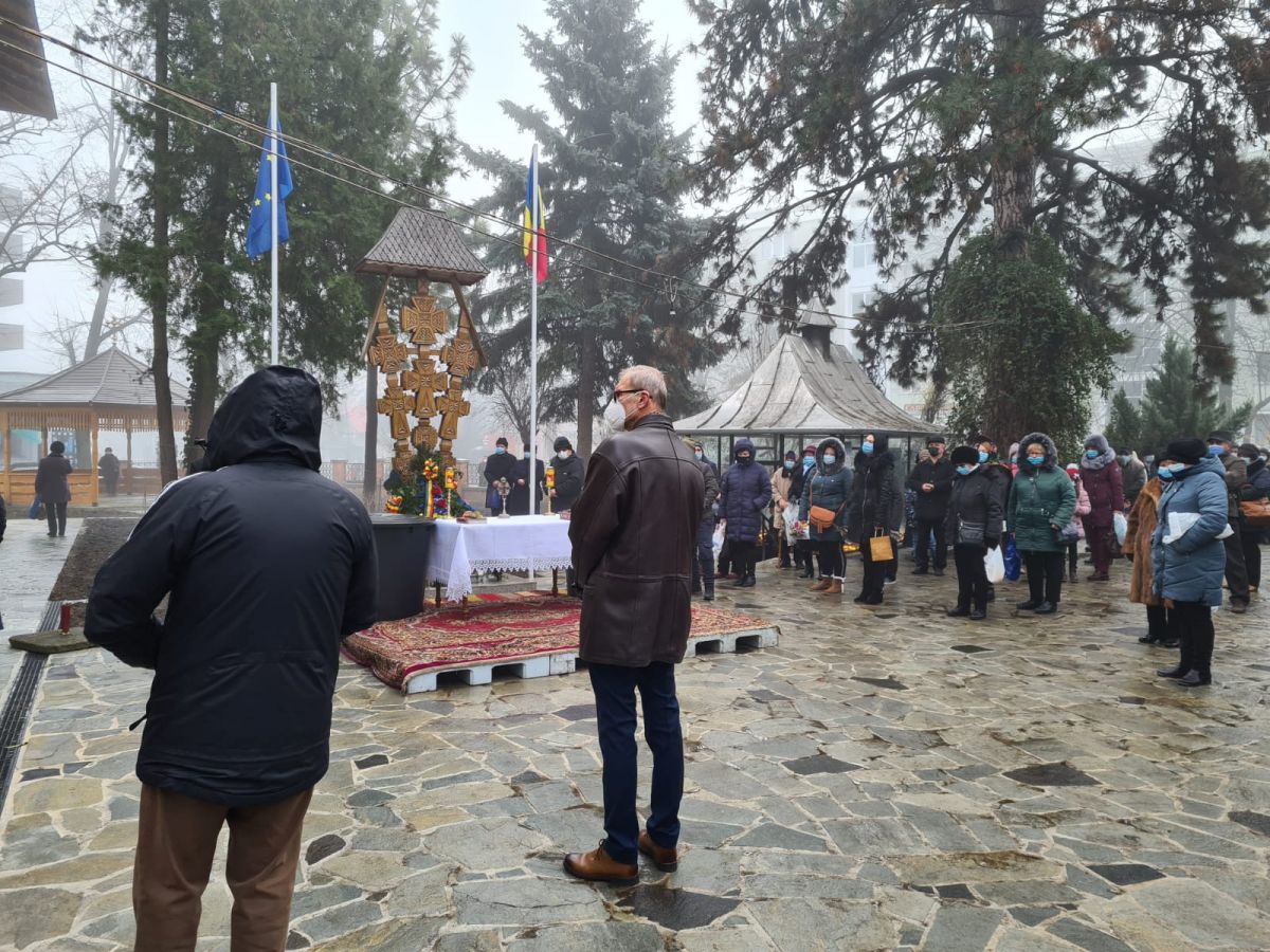 Zeci de credincioși participă la această oră la slujba de sfințire a apei, la Biserica ”Sfânta Parascheva” de pe Pietonalul Unirii din municipiul Botoșani.