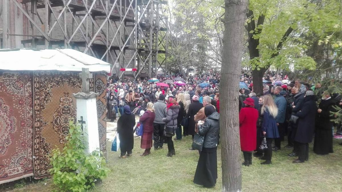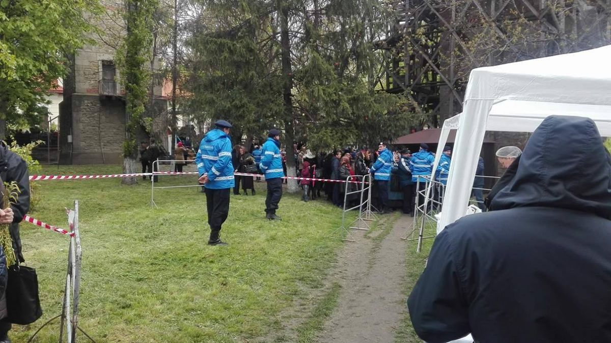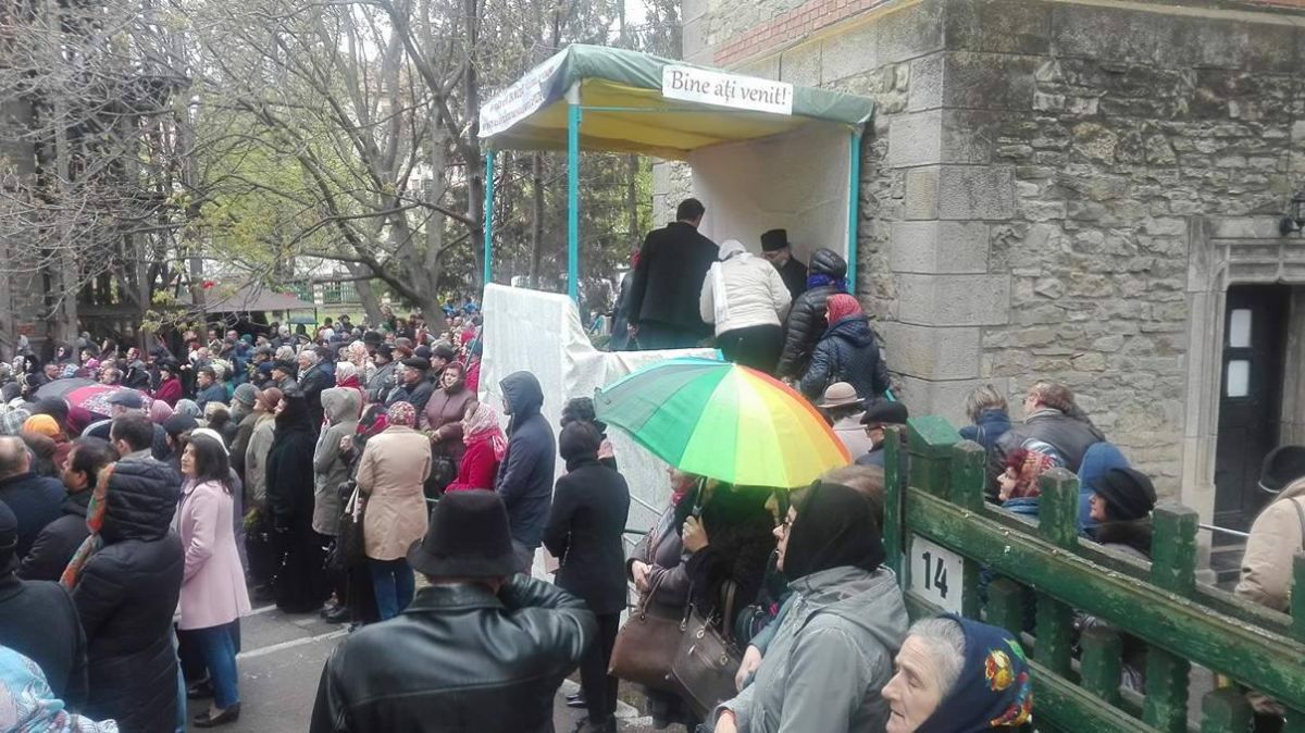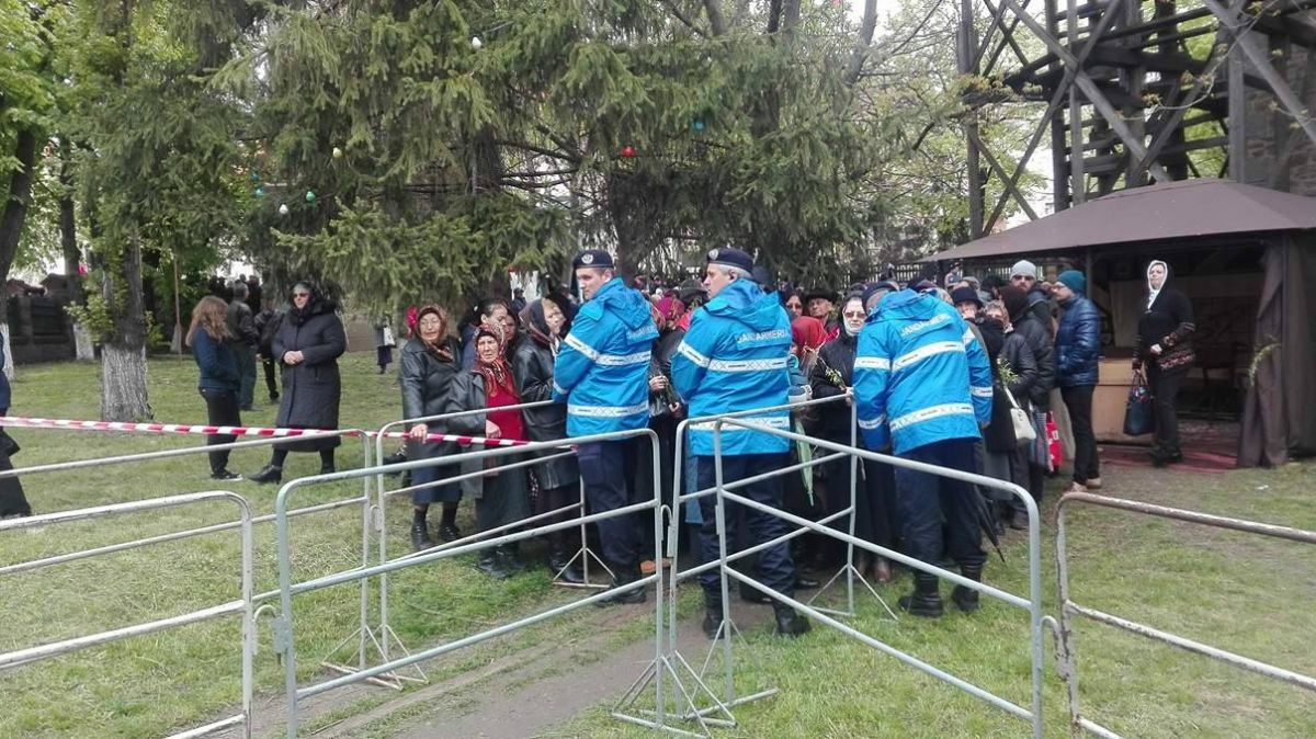 Sute de oameni, dirijați de jandarmi, stau la rând pentru a venera moaștele Sfântului Ierarh Nicolae și ale Sfinților doctori fără de arginți Epictet și Astion.