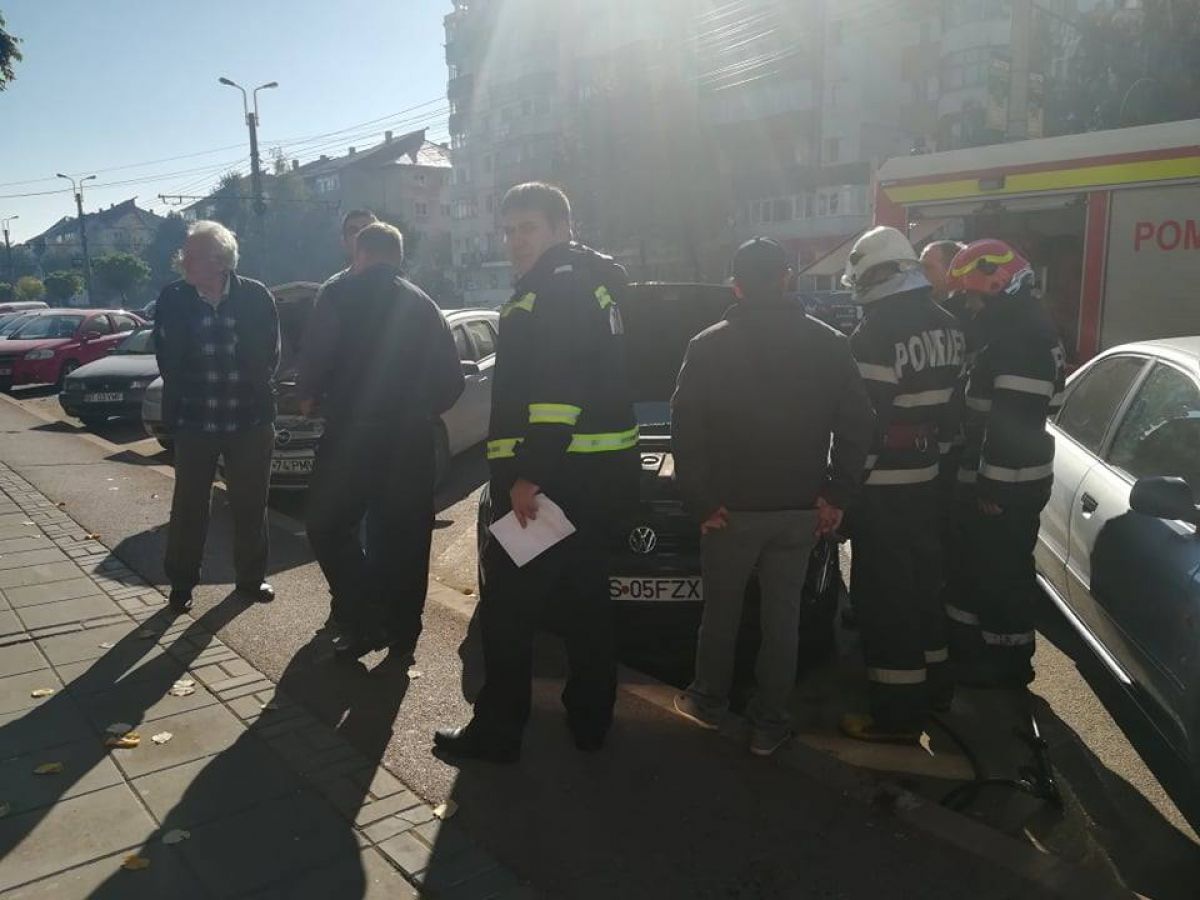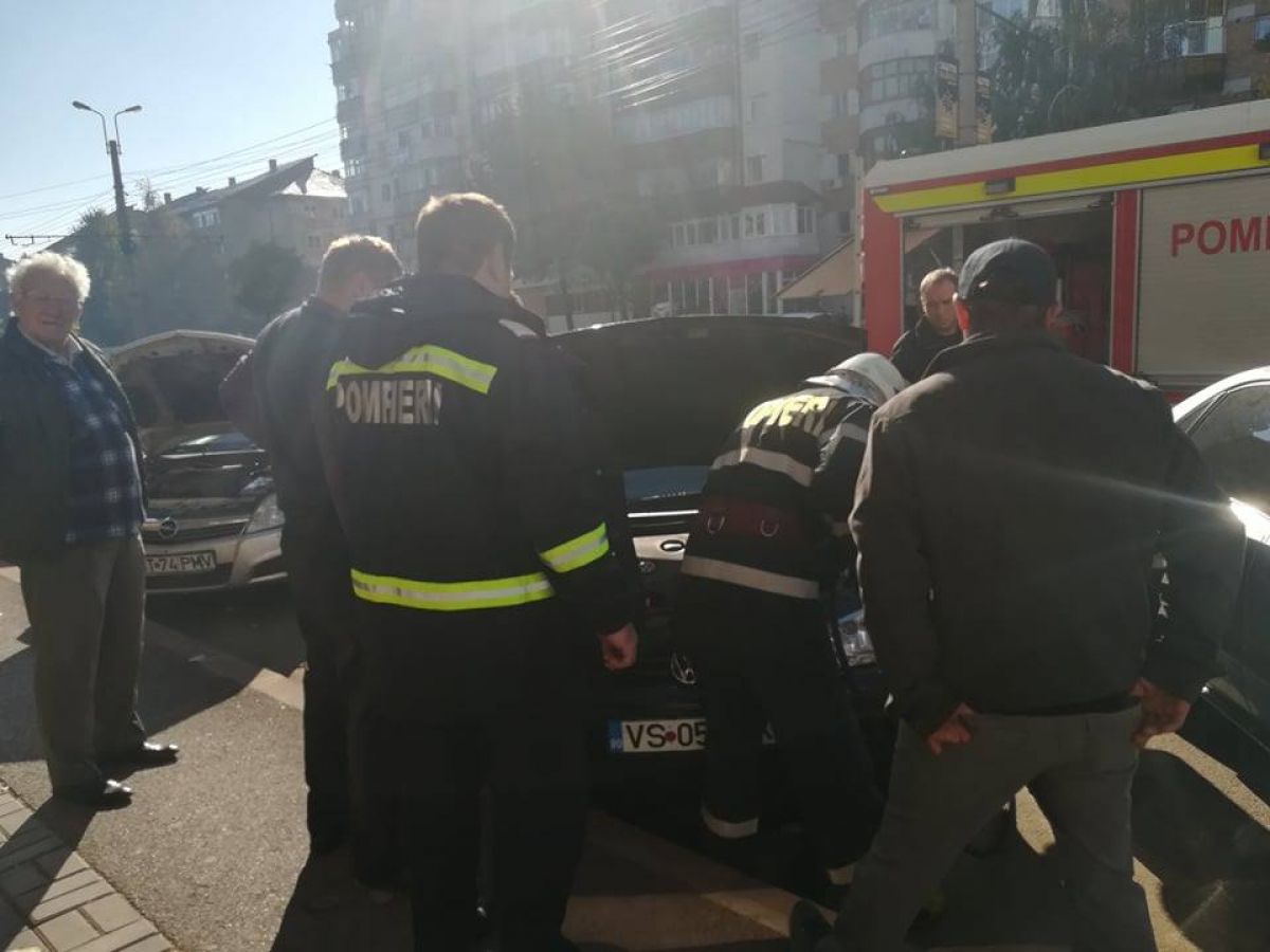 Şoferul a fost cel care a alertat autorităţile, fiind speriat de faptul că de sub capota maşinii ieşea fum.