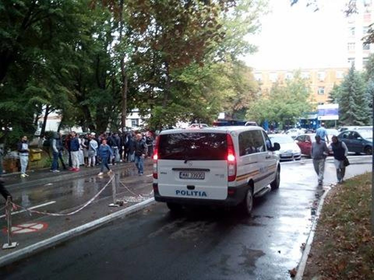 Dubele Ministerului Afacerilor Interne (MAI) continuă să tot vină la Unitatea de Primiri Urgenţe. Se încearcă dispersarea grupului masiv de cetăţeni romi însă aceştia se încăpățânează să rămână pe loc, ţipă şi îl jeluiesc pe bărbatul care a fost omorât în zorii zilei de un membru al etniei.