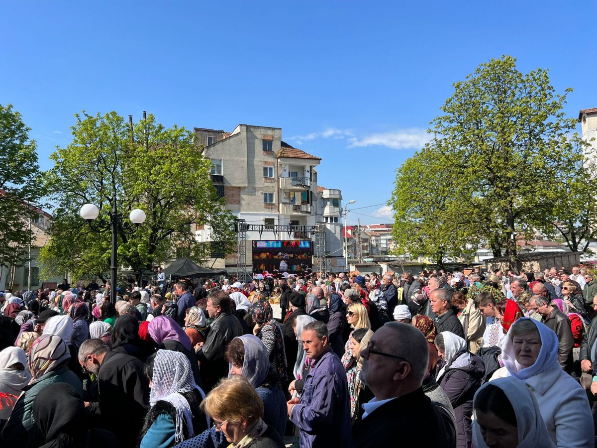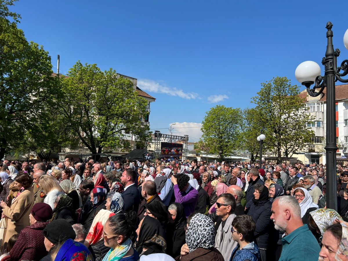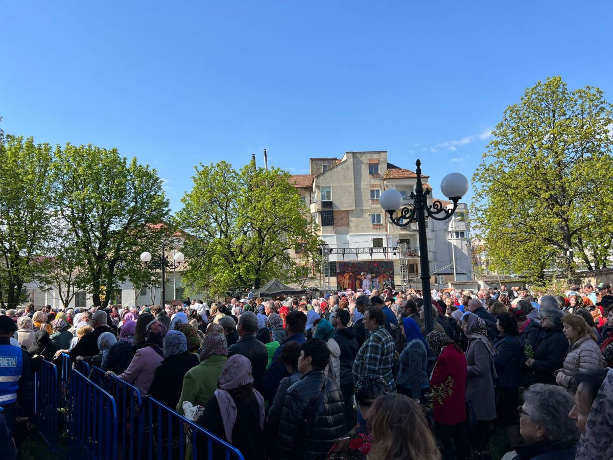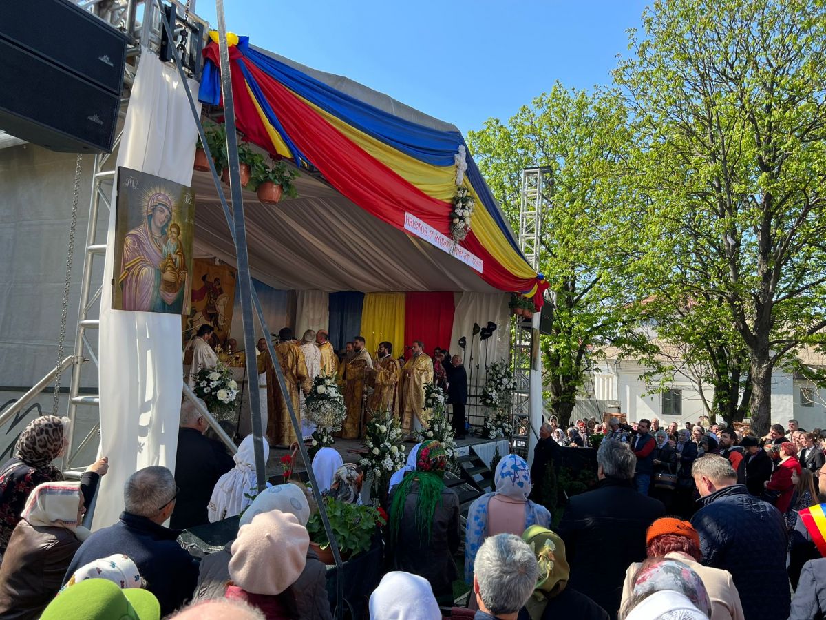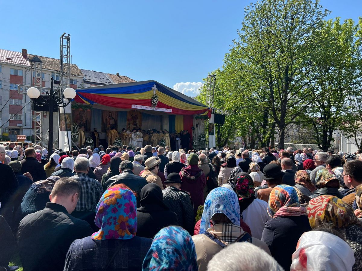 Pentru credincioșii care nu au acces la perimetrul din fața scenei a fost amplasat un ecran uriaș în partea opusă.