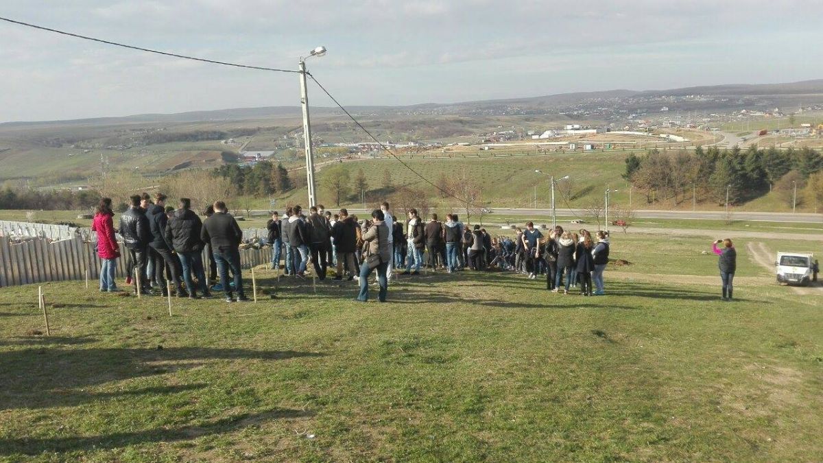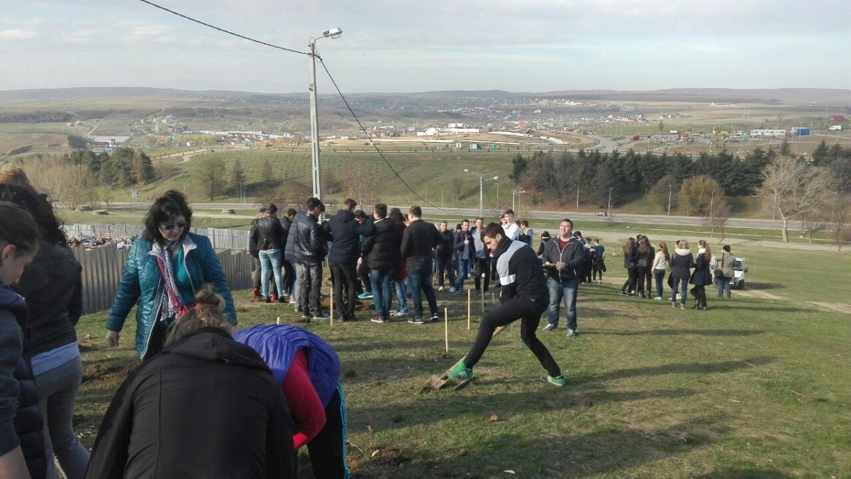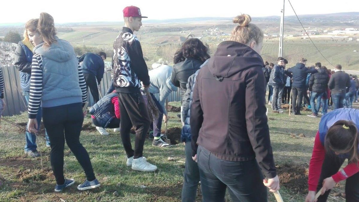 Aproximativ 400 de copii s-au adunat în această dimineață însorită de joi, 31 martie 2016, pe versantul de la Pacea, pentru a planta puieți de stejari.